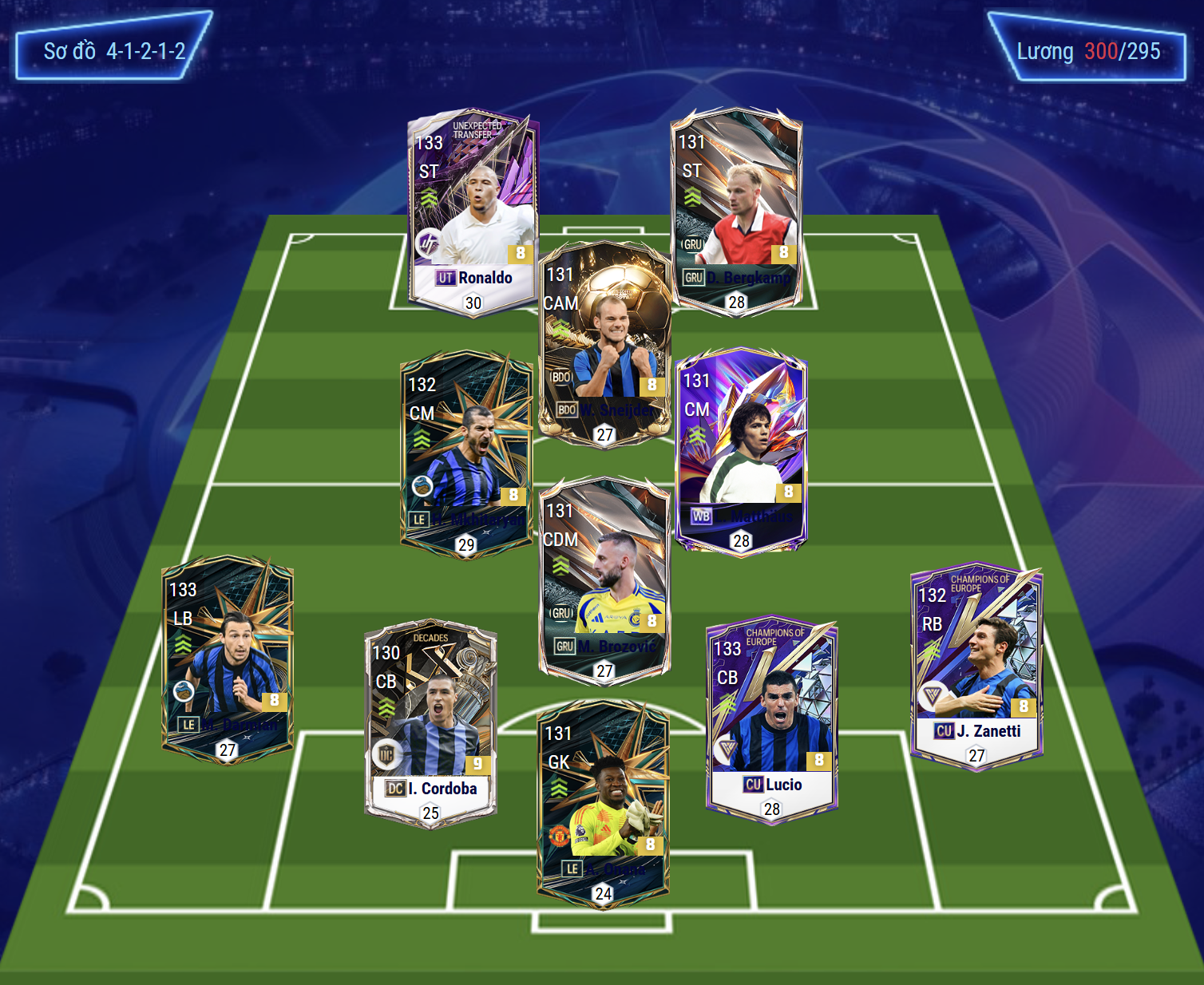 Sơ đồ 4-1-2-1-2 được lựa chọn với bộ đôi tiền đạo Ronaldo Nazário và Dennis Bergkamp trên hàng công. Cả hai đều sở hữu kỹ năng dứt điểm toàn diện bằng hai chân, khả năng di chuyển thông minh cùng bộ kỹ năng xử lý bóng tinh tế, mang lại sự nguy hiểm trong mọi tình huống tấn công. Chơi phía sau là Wesley Sneijder trong vai trò hộ công. Tiền vệ người Hà Lan nổi bật với khả năng kiến tạo, sút xa uy lực và xử lý bóng gọn gàng trong không gian hẹp, đóng vai trò kết nối giữa tuyến giữa và hàng công.
