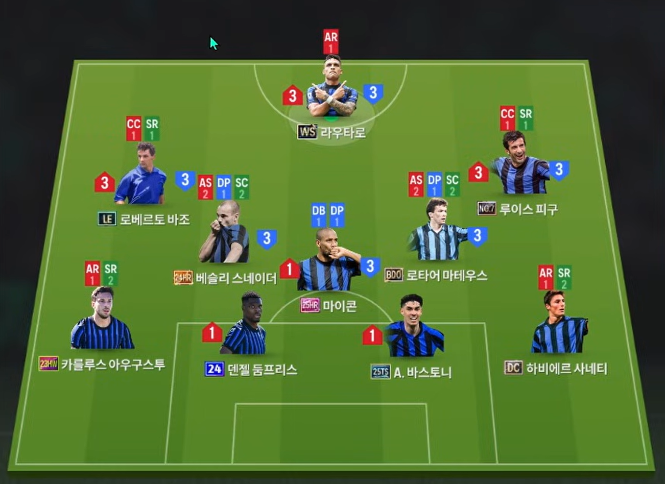 Sơ đồ 4-1-4-1 được lựa chọn với Lautaro Martínez đá cao nhất trên hàng công. Anh sở hữu AI di chuyển thông minh, tốc độ tốt và khả năng dứt điểm đa dạng bằng cả hai chân, phù hợp với vai trò mũi nhọn duy nhất. Hai tiền vệ cánh Baggio và Figo mang tới chất kỹ thuật cùng tư duy xử lý mềm mại. Khả năng chuyền bóng, rê dắt biên và tạo đột biến của họ giúp Inter duy trì áp lực liên tục ở hai hành lang, đồng thời mở ra các phương án tấn công đa dạng từ biên vào trung lộ.
