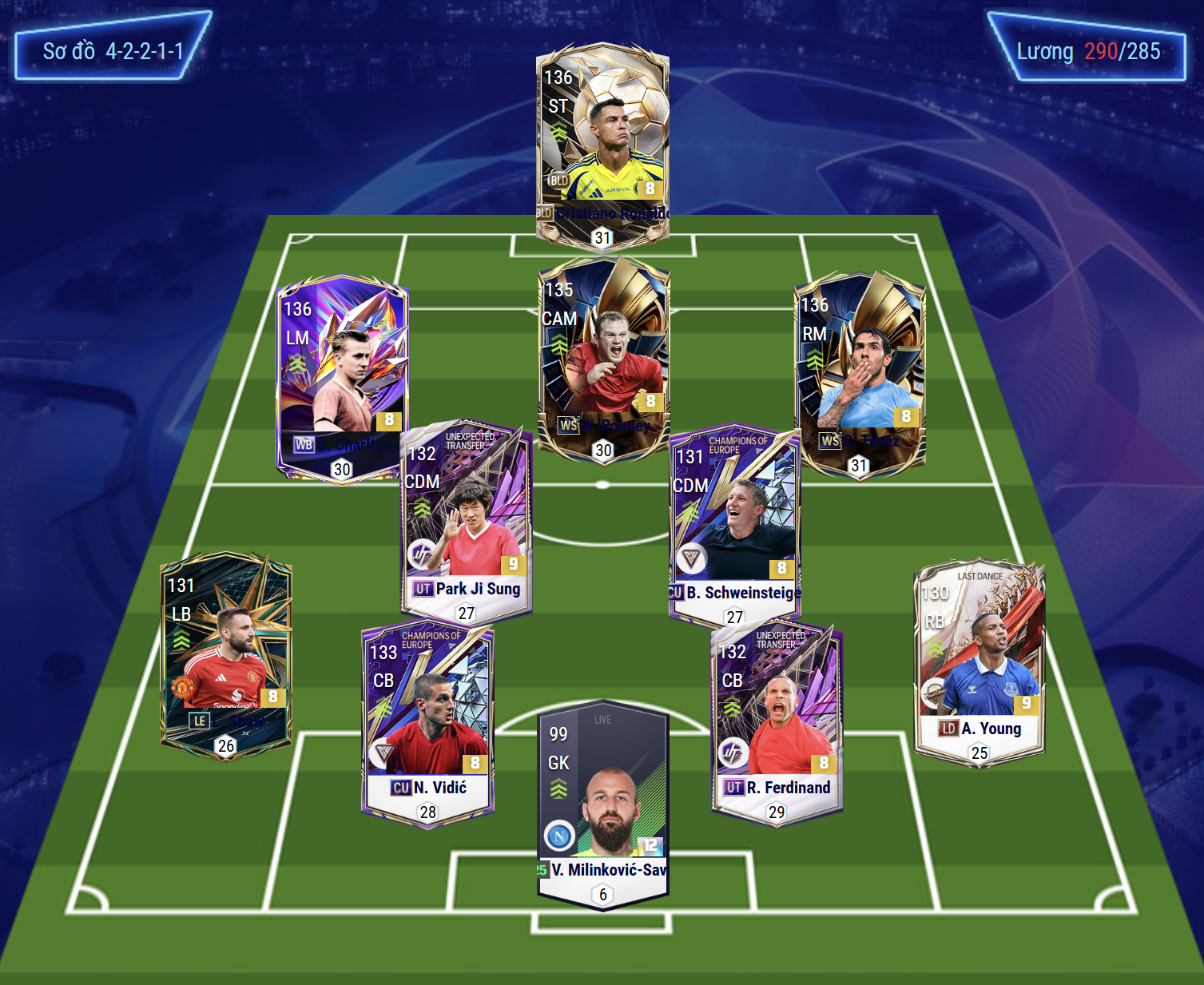 Mỗi cá nhân mang một màu sắc riêng, nhưng khi đặt cạnh nhau, họ tạo nên một tổng thể hoàn chỉnh và giàu tính sát thương. Ronaldo là điểm nổ với khả năng tạo đột biến từ những pha xử lý táo bạo và dứt điểm đầy cảm giác. Rooney đóng vai trò trung tâm trong lối chơi, vừa kết nối các mảng miếng tấn công, vừa sẵn sàng lùi sâu, tranh chấp và tung ra những cú sút tuyến hai đầy uy lực.