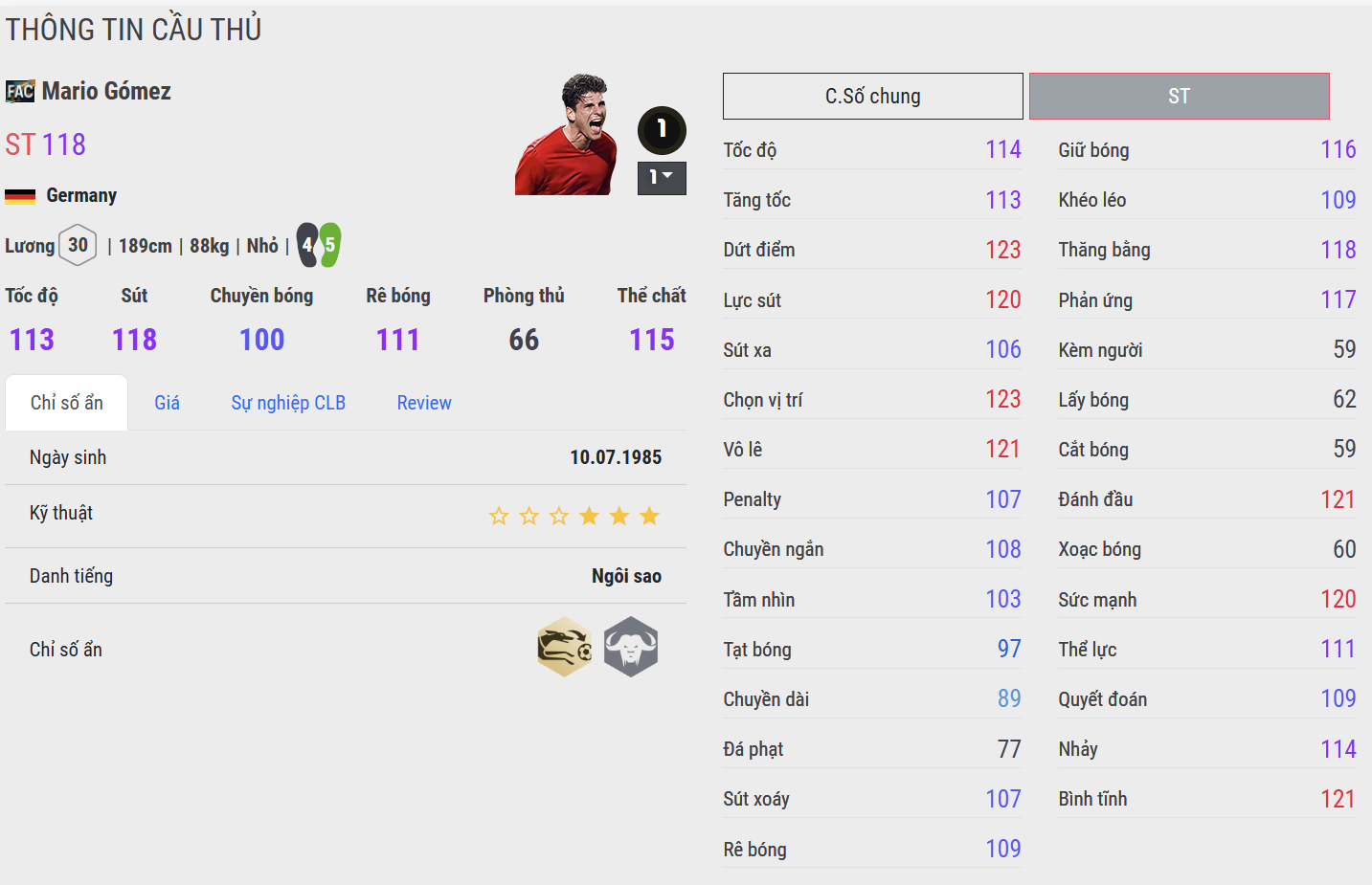 Mario Gómez là mẫu trung phong cổ điển tiêu biểu của bóng đá Đức – mạnh mẽ, trực diện và cực kỳ hiệu quả trong vòng cấm. Không sở hữu kỹ thuật hoa mỹ hay khả năng xử lý cầu kỳ, Gómez chinh phục người xem bằng bản năng săn bàn thuần túy, khả năng chọn vị trí chuẩn xác và những pha dứt điểm một chạm gọn gàng đến lạnh lùng.
