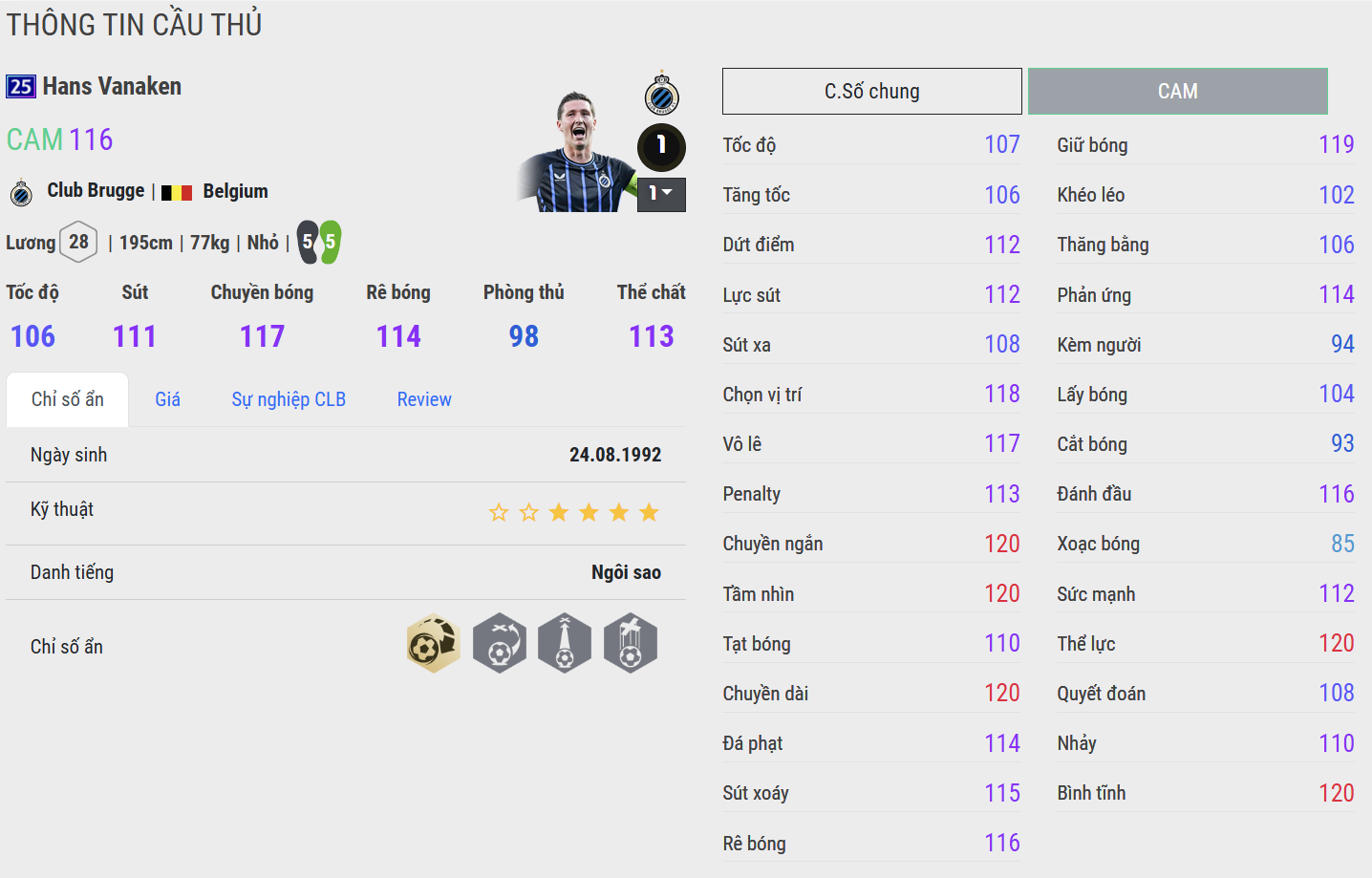 Hans Vanaken là mẫu tiền vệ công mang đậm tính hiệu quả – nơi sự điềm tĩnh, nhãn quan chiến thuật và khả năng chọn vị trí tạo nên giá trị khác biệt. Anh không phải kiểu cầu thủ phô diễn kỹ thuật, nhưng luôn biết cách xuất hiện đúng lúc để tạo ảnh hưởng lên trận đấu.