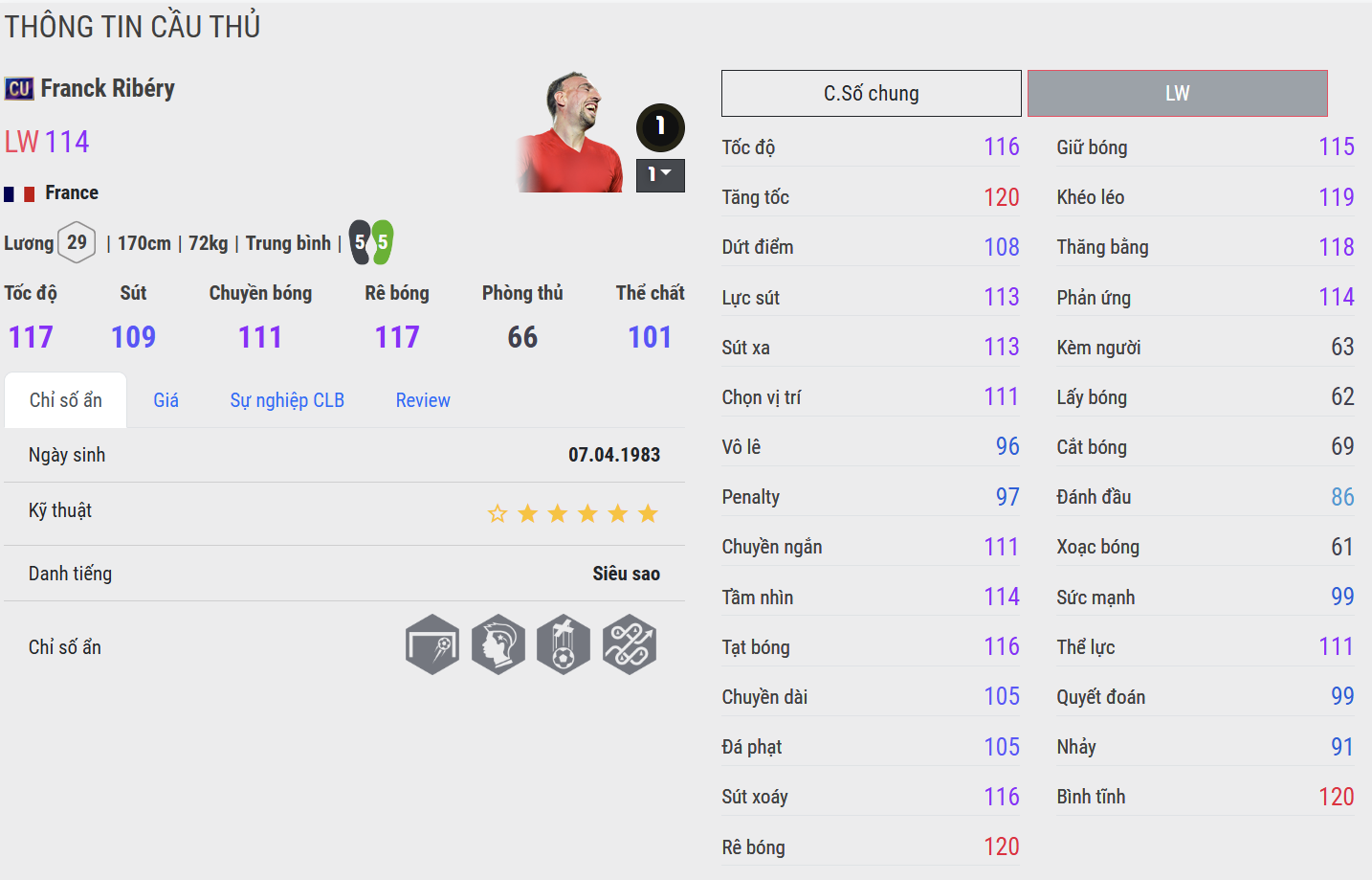Franck Ribéry CU là cái tên nổi bật nhất nhờ khả năng tạo đột biến liên tục ở hành lang cánh. Ribery sở hữu tốc độ tốt, kỹ thuật rê bóng cực kỳ mượt và khả năng xử lý linh hoạt trong không gian hẹp. Những pha đi bóng lắt léo cùng khả năng dứt điểm ổn định giúp anh trở thành mũi tấn công cực kỳ nguy hiểm trong thực chiến.