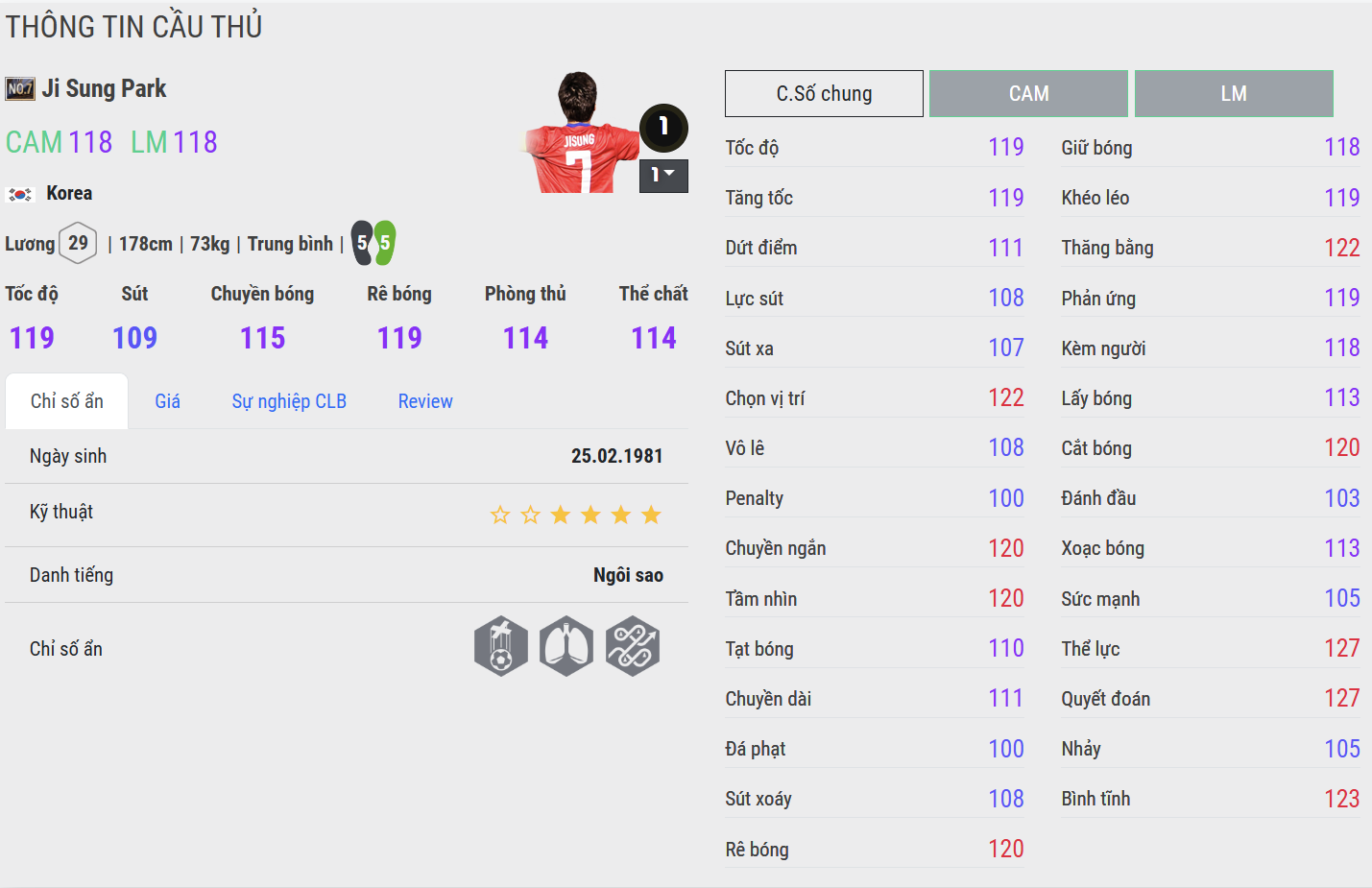 Không ngừng di chuyển, bền bỉ và đa năng. Park Ji Sung luôn là biểu tượng của sự cần mẫn và cống hiến. Trong FC Online, anh là quân bài chiến thuật đa năng bậc nhất – có thể đá cánh, CM hay CAM đều hiệu quả. Điểm mạnh của Park là thể lực dồi dào, pressing thông minh và khả năng phối hợp cực tốt trong các pha ban bật. Không phải mẫu cầu thủ tạo highlight, nhưng lại luôn là người định hình lối chơi.