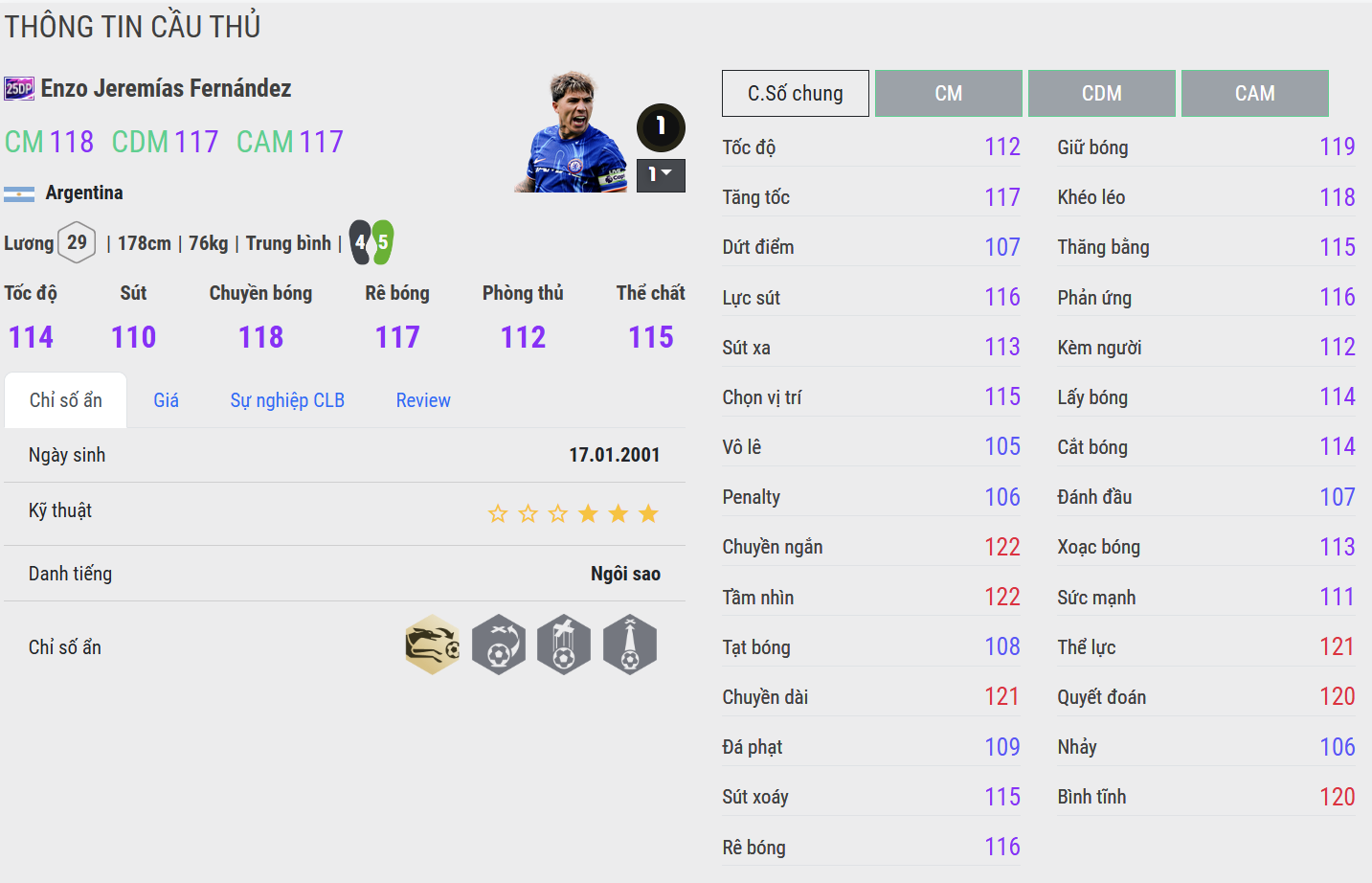 Enzo 25DP giống như người điều phối nhịp thở của đội bóng. Anh kết hợp sức mạnh, khả năng tổ chức và tầm nhìn trong từng đường bóng. Enzo luôn giữ được sự điềm tĩnh, biết khi nào cần “lùi xuống bịt khoảng trống”, khi nào cần tung ra một đường chuyền xuyên tuyến đầy táo bạo. Tính toàn diện của anh khiến Enzo trở thành lựa chọn số 1 cho tuyến giữa mùa 25DP – bền bỉ, sáng tạo và giàu tính kết nối.