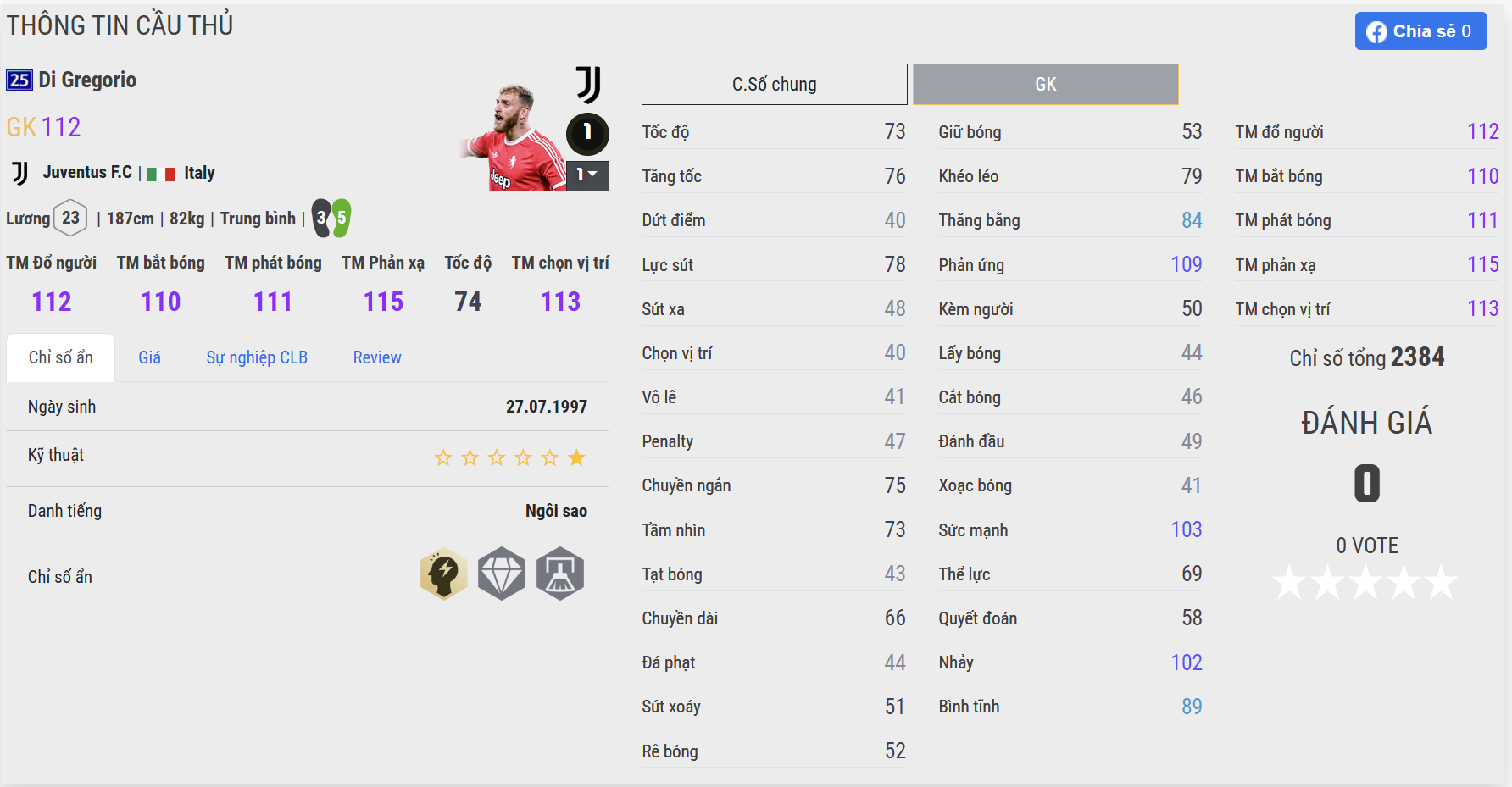 Michele Di Gregorio 25UCL là lựa chọn ổn định với khả năng phản xạ nhanh trong các tình huống cận thành. Anh có xu hướng xử lý khá gọn gàng, đặc biệt trong những pha đối mặt ở khoảng cách gần. Dù không quá nổi bật về thể hình, nhưng sự nhanh nhạy giúp Di Gregorio vẫn mang lại hiệu quả nhất định trong khung gỗ.