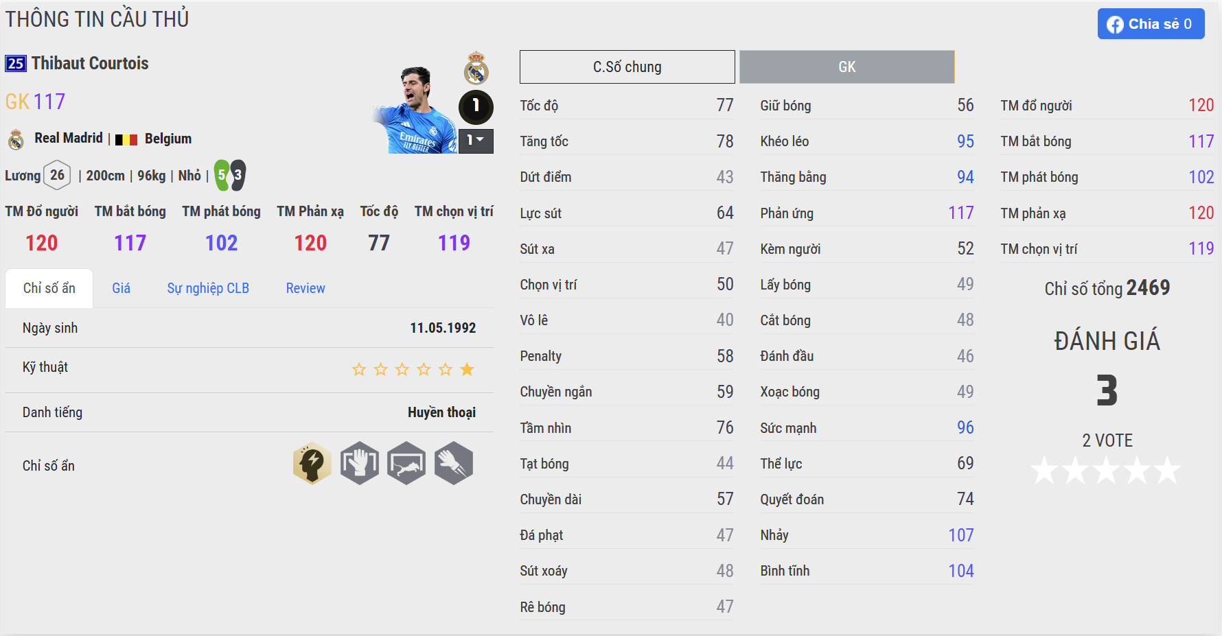 Thibaut Courtois 25UCL là cái tên nổi bật nhất nhờ sự toàn diện và độ ổn định cực cao. Với thể hình lý tưởng cùng sải tay dài, Courtois có thể cản phá hiệu quả trong cả những tình huống sút xa lẫn đối mặt. Khả năng chọn vị trí thông minh, phản xạ tốt và sự chắc chắn trong khung gỗ giúp anh trở thành lựa chọn hàng đầu cho mọi đội hình hướng đến sự an toàn.