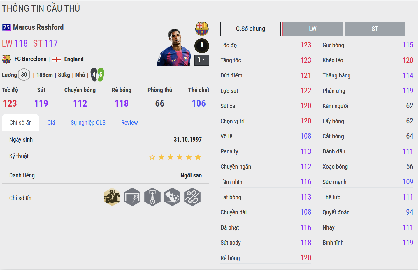 Marcus Rashford 25UCL nổi bật nhờ tốc độ bứt phá mạnh mẽ cùng khả năng dứt điểm uy lực. Khi có khoảng trống để tăng tốc, Rashford có thể tạo ra sự khác biệt rất nhanh bằng những pha cắt vào trung lộ và tung ra cú sút quyết đoán. Trong thực chiến, phiên bản này đặc biệt nguy hiểm trong các tình huống phản công, nơi tốc độ và lực sút của anh được phát huy tối đa.