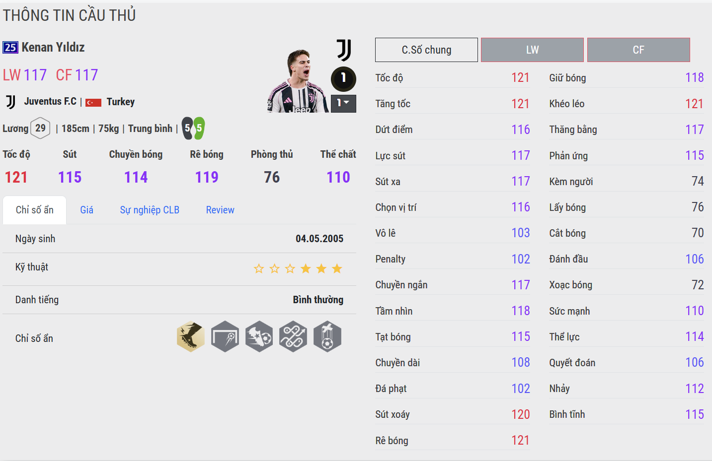 Kenan Yıldız 25UCL mang đến phong cách chơi bóng mềm mại và giàu kỹ thuật. Khả năng xử lý bóng khéo léo cùng những pha đổi hướng linh hoạt giúp anh dễ dàng vượt qua hậu vệ trong không gian hẹp. Điểm nổi bật của Yildiz nằm ở cảm giác bóng và sự tự tin khi cầm bóng, mang lại nhiều phương án sáng tạo trong khâu tấn công.