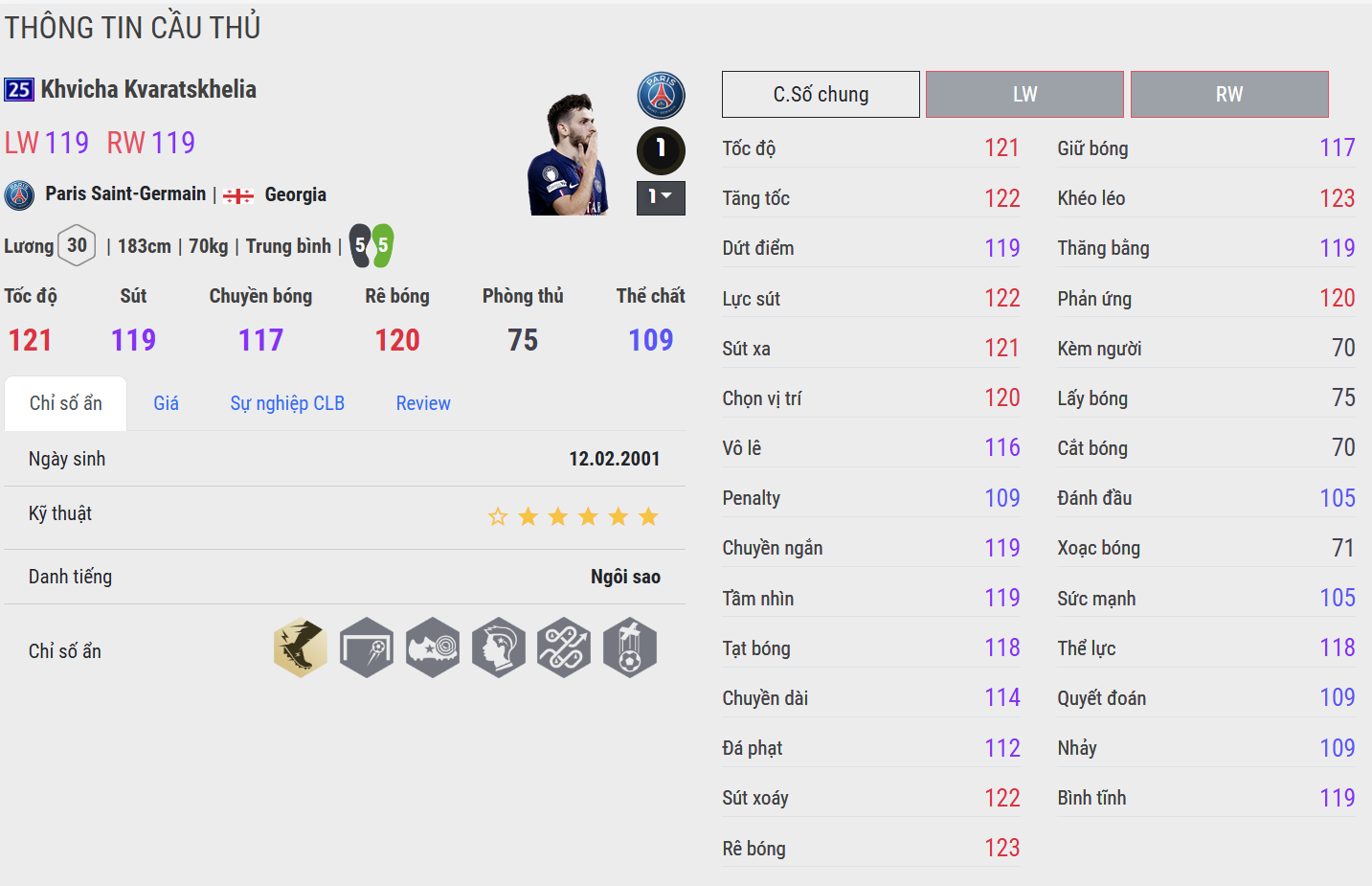 Khvicha Kvaratskhelia 25UCL là cái tên nổi bật nhất trong danh sách nhờ sự cân bằng gần như hoàn hảo giữa tốc độ, kỹ thuật và khả năng tạo đột biến. Những pha rê bóng mềm mại, khả năng giữ thăng bằng tốt và sự sáng tạo trong cách xử lý giúp anh luôn tạo ra khác biệt ở hành lang cánh. Không chỉ giỏi đột phá, Kvaratskhelia còn sở hữu khả năng dứt điểm và kiến tạo hiệu quả, khiến anh trở thành mũi tấn công toàn diện và đáng tin cậy nhất trong nhóm thẻ chạy cánh 25UCL.