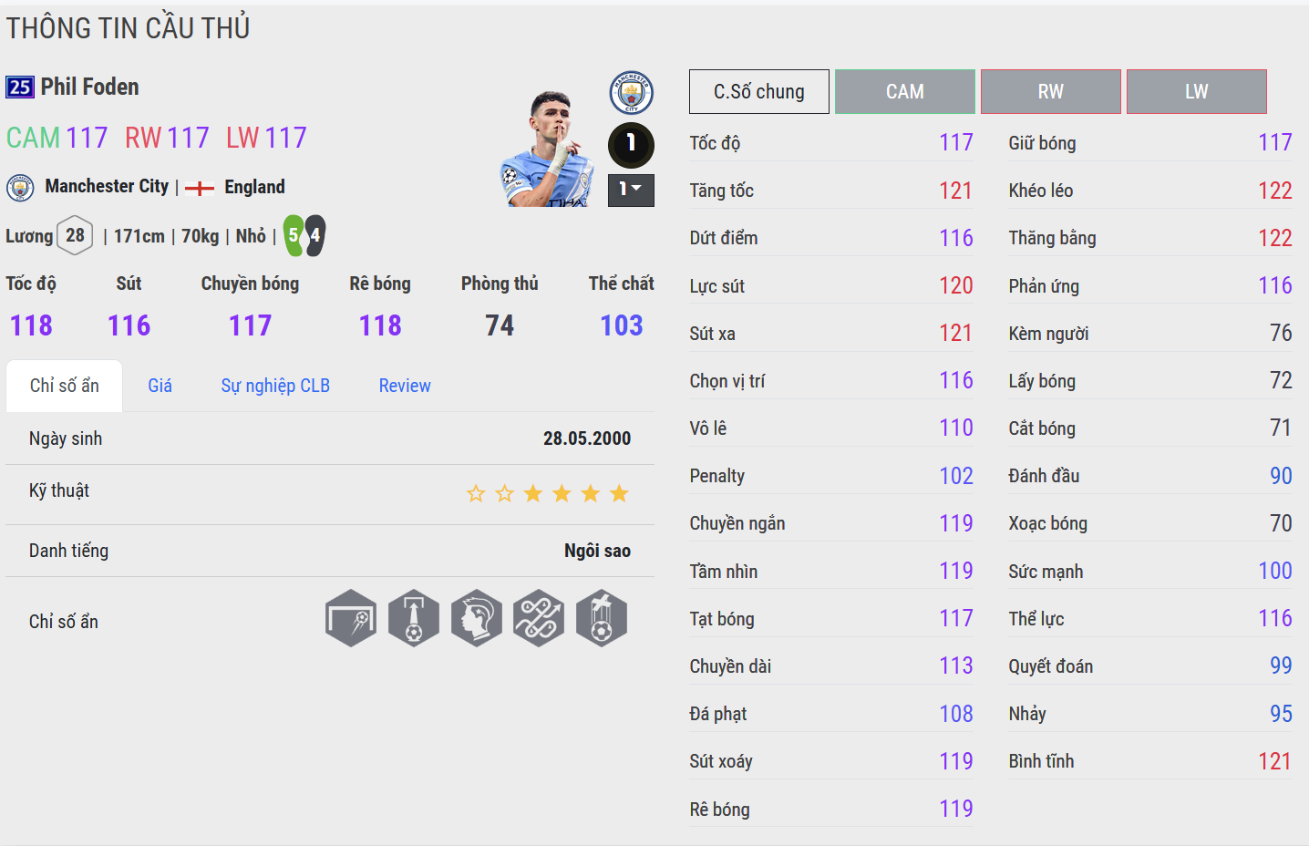 Phil Foden 25UCL nổi bật nhờ kỹ thuật cá nhân khéo léo và khả năng xử lý bóng cực kỳ linh hoạt. Foden có xu hướng chơi bóng sáng tạo, thường xuyên di chuyển vào khu vực trung lộ để tham gia phối hợp và tạo cơ hội. Những pha rê bóng mềm mại cùng khả năng chuyền bóng thông minh giúp anh trở thành mắt xích quan trọng trong các tình huống tấn công.