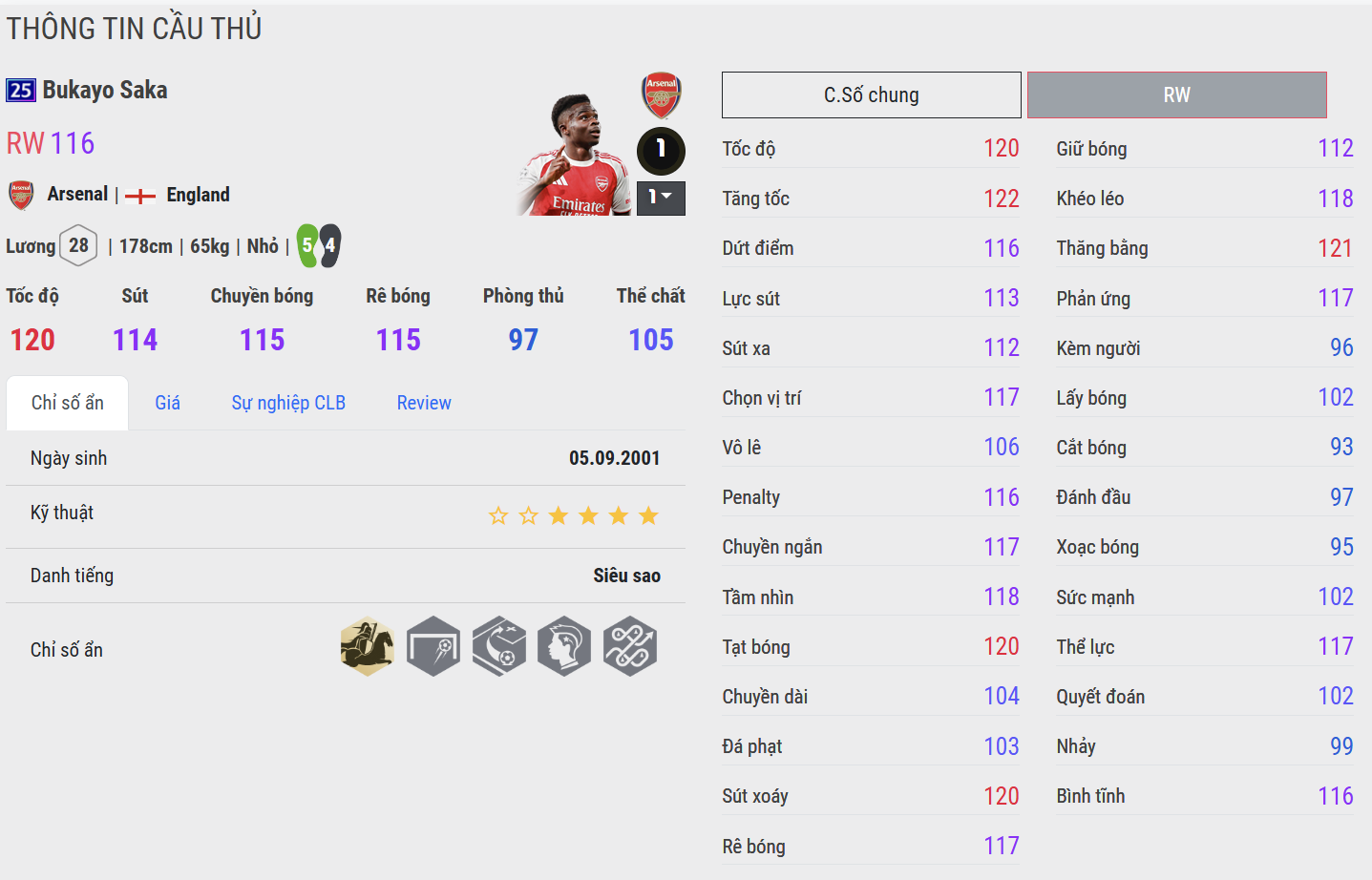 Bukayo Saka 25UCL là mẫu cầu thủ chạy cánh rất toàn diện. Anh sở hữu tốc độ tốt, khả năng rê bóng chắc chắn và những pha xử lý bóng khá ổn định trong thực chiến. Ngoài khả năng đột phá, Saka còn có thể tung ra những đường chuyền nguy hiểm hoặc tự mình dứt điểm khi có khoảng trống, giúp anh trở thành mũi tấn công rất đáng tin cậy ở hành lang phải.