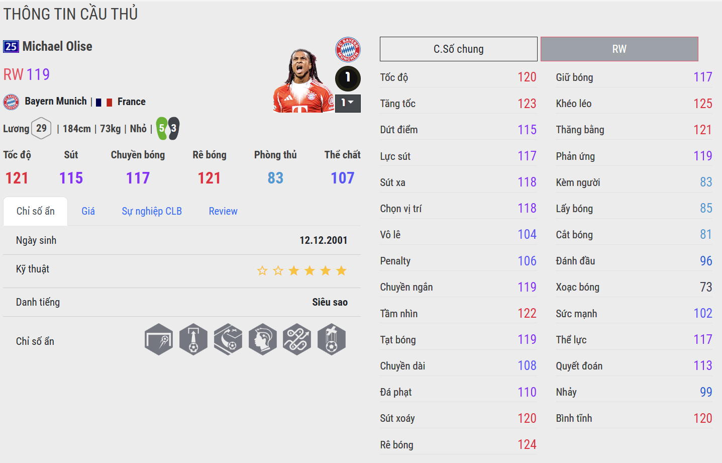 Michael Olise 25UCL là cái tên nổi bật nhất nhờ sự cân bằng giữa kỹ thuật, tốc độ và khả năng sáng tạo. Olise có khả năng kiểm soát bóng rất tốt, rê bóng mượt và thực hiện những pha xử lý đầy tinh tế ở khu vực tấn công. Bên cạnh đó, anh còn sở hữu những đường chuyền sắc bén cùng khả năng dứt điểm khá hiệu quả, giúp trở thành mũi tấn công cực kỳ nguy hiểm ở hành lang cánh trong nhiều đội hình.