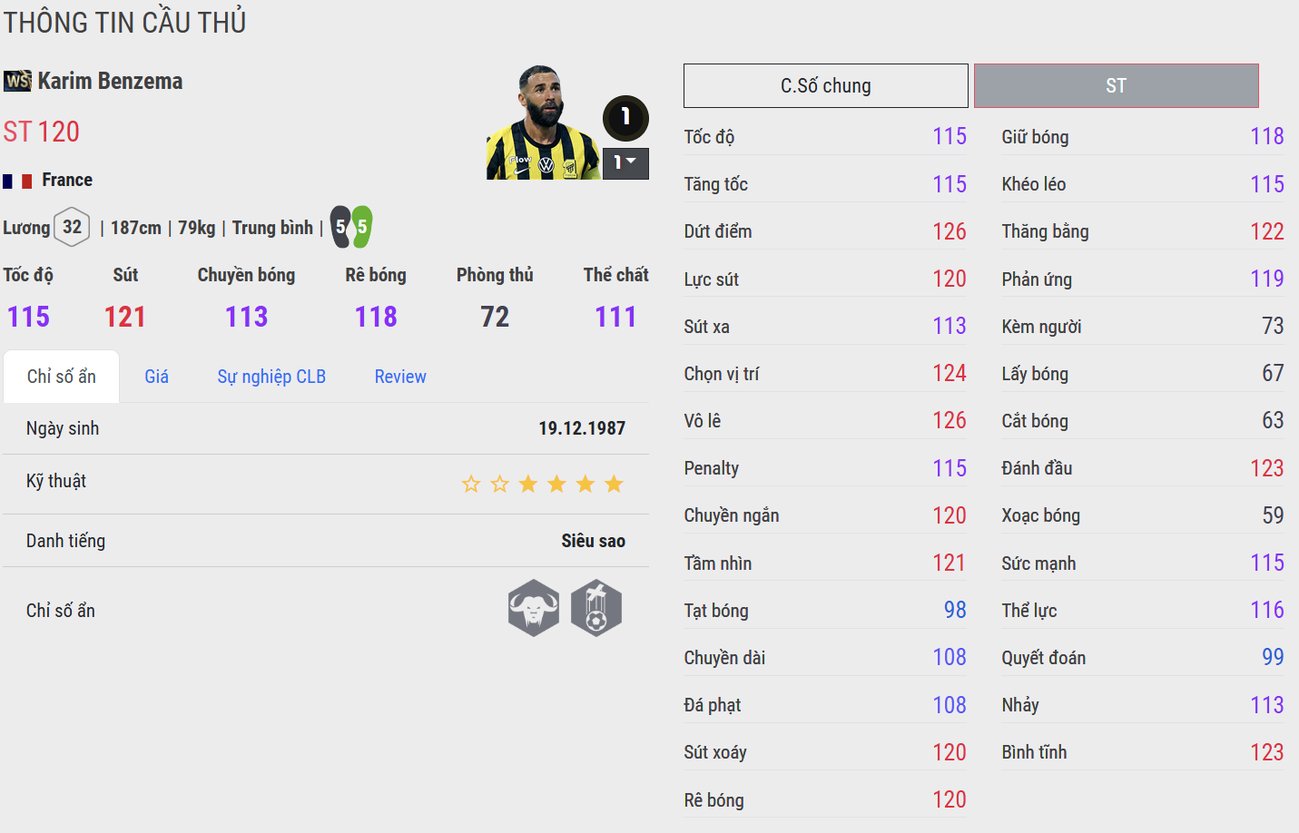 Tiền đạo người Pháp thể hiện sự toàn diện với kỹ thuật mềm mại, nhãn quan tinh tế và bản năng săn bàn nhạy bén. Benzema WS mang lại sự hiệu quả bền bỉ, luôn biết cách lên tiếng ở những thời khắc căng thẳng.