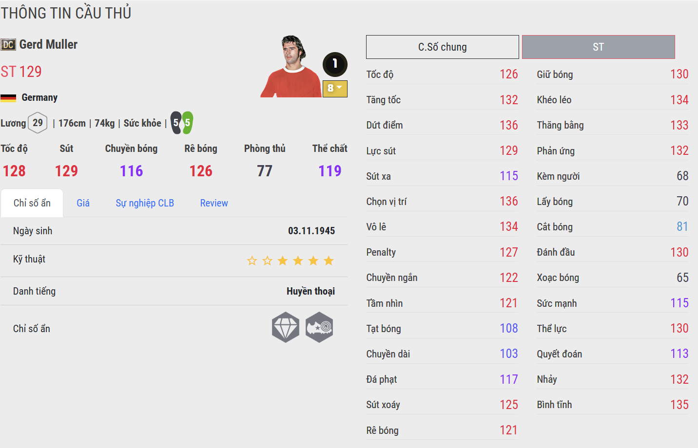 Müller DC tái hiện hình ảnh “Vua dội bom” trứ danh với bản năng săn bàn thiên bẩm. Anh sở hữu khả năng chọn vị trí siêu hạng, di chuyển khôn ngoan và dứt điểm gọn gàng trong vòng cấm. Trong gameplay, Müller mang đến sự đơn giản nhưng cực kỳ hiệu quả, luôn xuất hiện đúng lúc để kết liễu đối phương.