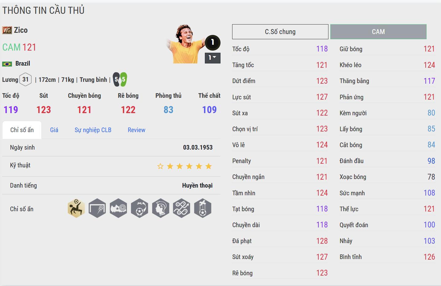 Zico WG là mẫu CAM thiên về kỹ thuật và sáng tạo. Khả năng rê bóng mềm mại, xử lý tinh tế và chuyền bóng sắc bén giúp ông trở thành trung tâm kết nối lối chơi trong những thế trận cần sự linh hoạt.