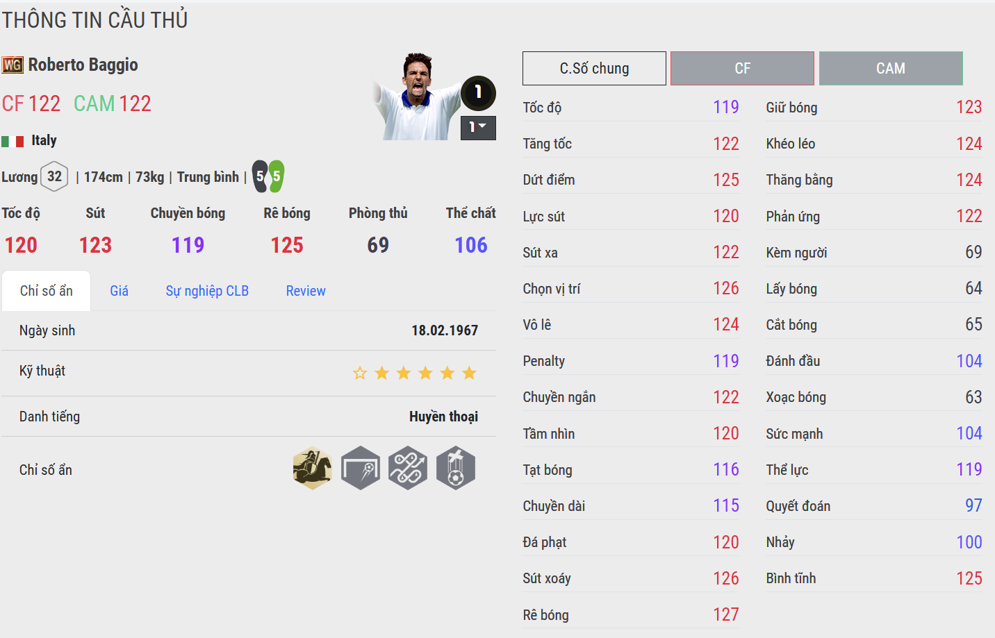 Roberto Baggio WG mang đậm chất nghệ sĩ. Những pha chạm bóng, xoay người và xử lý trong phạm vi hẹp của ông cực kỳ mượt mà, tạo ra cảm giác chơi bóng rất “bay”. Baggio phù hợp với lối đá thiên về cảm giác và sáng tạo.