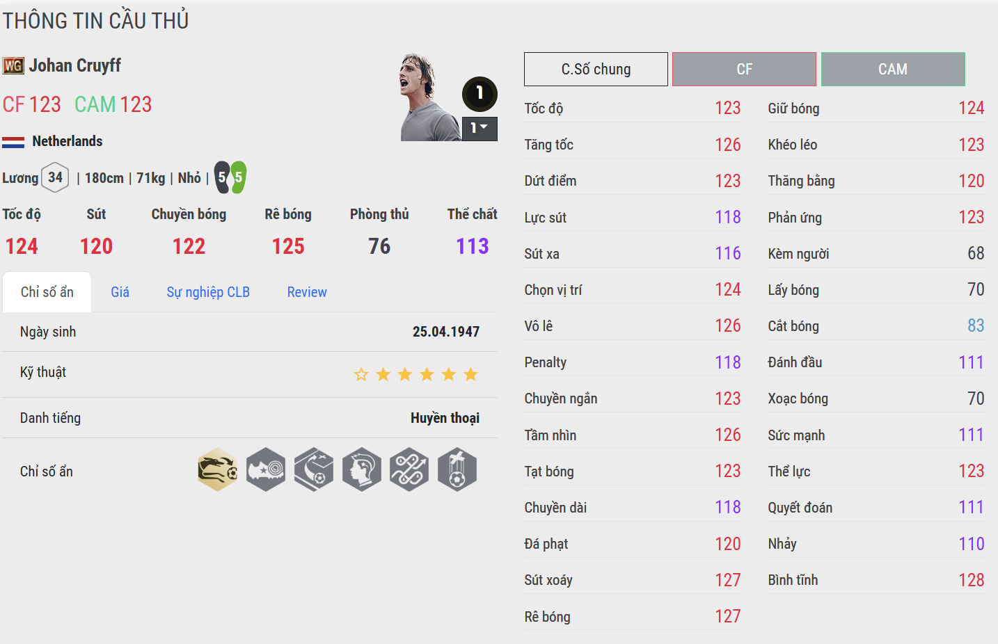 Johan Cruyff WG là sự kết hợp hoàn hảo giữa tốc độ, kỹ thuật và tư duy di chuyển. Ông không chỉ tạo cơ hội mà còn trực tiếp tham gia ghi bàn, luôn xuất hiện đúng lúc ở những điểm nóng để tạo khác biệt.