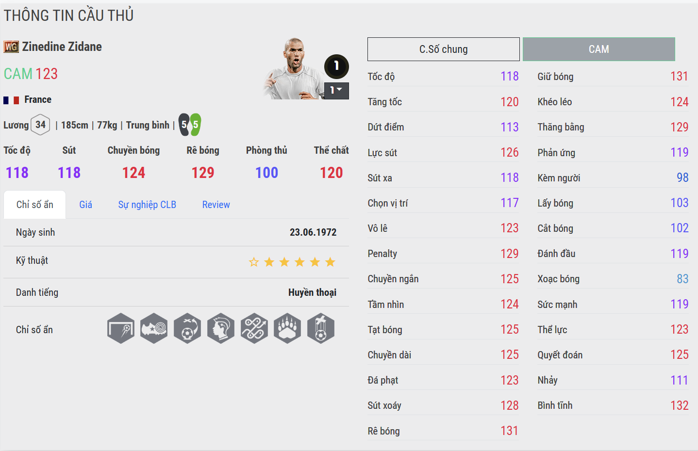 Zinedine Zidane WG là đỉnh cao của sự tinh tế. Từ những pha xử lý bóng, giữ nhịp cho đến các đường chuyền quyết định, tất cả đều đạt đến độ hoàn thiện rất cao. Trong thực chiến, Zidane mang lại cảm giác cực kỳ “mượt”, vừa kiểm soát thế trận vừa tạo ra những khoảnh khắc mang tính định đoạt.