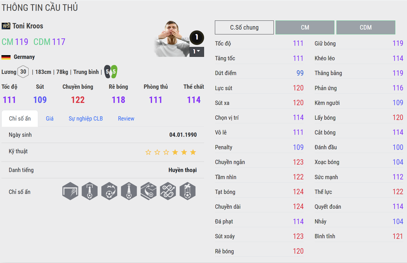 Kroos WS là hiện thân của sự điềm tĩnh và kiểm soát. Anh điều tiết nhịp độ trận đấu thông qua khả năng chuyền ngắn, chuyền dài và mở biên cực chính xác. Dù không mạnh ở thể lực hay tranh chấp, Kroos lại sở hữu chất nghệ sĩ trong từng pha xử lý và phất bóng. Khi được bảo vệ bởi một CDM thiên thủ, Kroos WS sẽ trở thành “bộ não” thực thụ của đội hình – người mở khóa mọi thế trận bằng tầm nhìn và sự tinh tế.