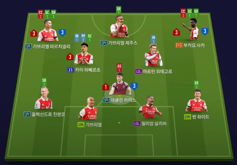 Chiến thuật đơn với Jesus sẽ là chạy chỗ. Bộ đôi Martinelli và Saka thiết lập bám biên, di chuyển chạy chỗ và hỗ trợ không chiến. Ở vị trí của Kai Havert, cầu thủ người Đức sẽ di chuyển rộng và thường xuyên có mặt ở những pha tạt bóng cùng với đó là đánh chặn chủ động. Trong khi Odegaard sẽ có xu hướng đá giữ vị trí hơn.
