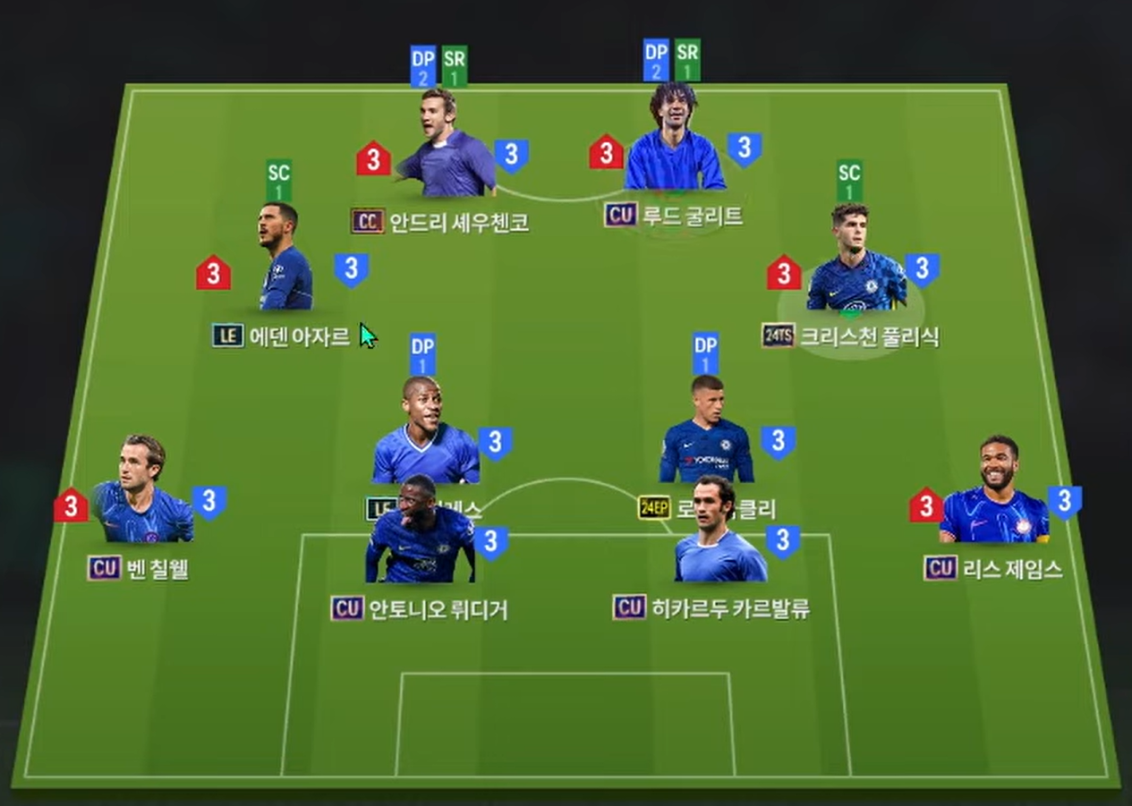 Khu trung tuyến có sự hiện diện của Ramires và Barkley, bộ đôi vừa chắc chắn trong phòng ngự vừa nguy hiểm ở những cú sút xa. Hàng thủ gồm Chilwell và Reece James dọc biên, chắc chắn trong phòng ngự nhưng cũng hỗ trợ tấn công tốt. Ở trung tâm, cặp Rudiger – Carvalho mang lại sự vững chắc nhờ tốc độ, khả năng đánh chặn và đọc tình huống, bảo vệ khung gỗ nơi Kepa trấn giữ.