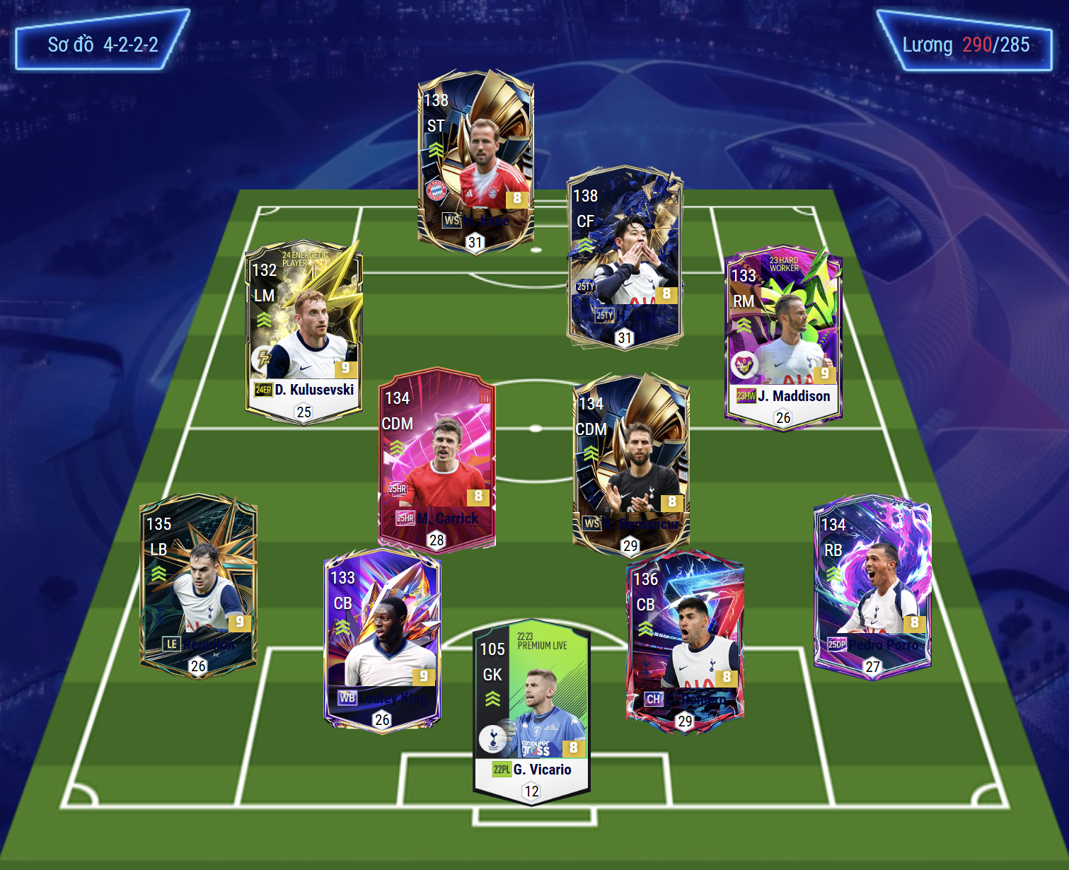 Trong FC Online, Tottenham trở thành lựa chọn lý tưởng cho các HLV ưa thích lối chơi nhanh, mạnh và dồn ép liên tục. Đội hình của “Gà trống” phản ánh rõ chất Premier League với nhịp độ cao, khả năng chuyển trạng thái nhanh và hàng công luôn sẵn sàng trừng phạt đối thủ chỉ sau vài nhịp chạm.