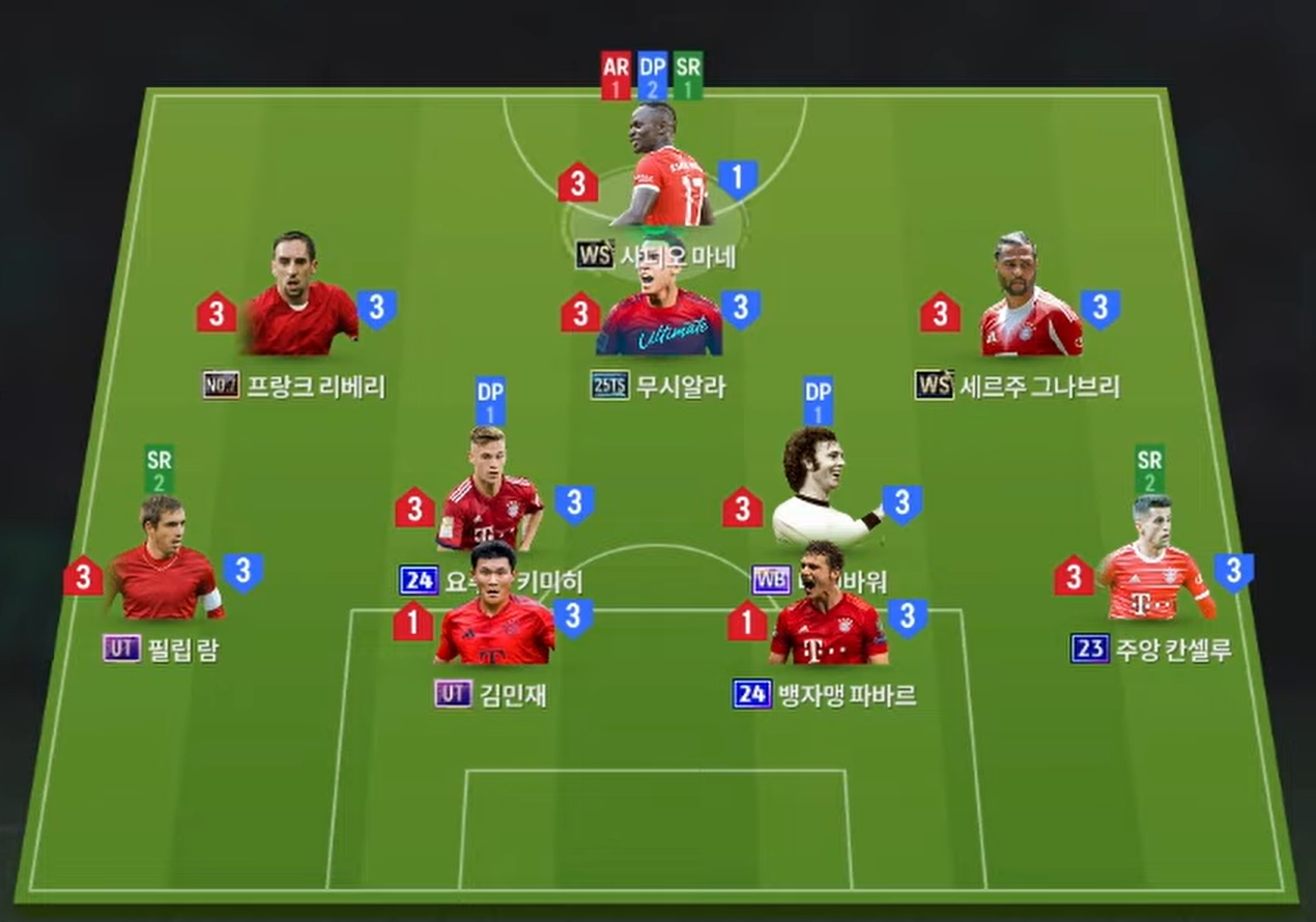 Sơ đồ 4-2-3-1 được xem là lựa chọn tối ưu cho Bayern Munich trong meta hiện tại. Ở vị trí tiền đạo cắm, Sadio Mané đảm nhận vai trò chủ lực với tốc độ vượt trội, khả năng dứt điểm bằng cả hai chân cùng kỹ năng xử lý bóng gọn gàng và hiệu quả trong phạm vi hẹp.