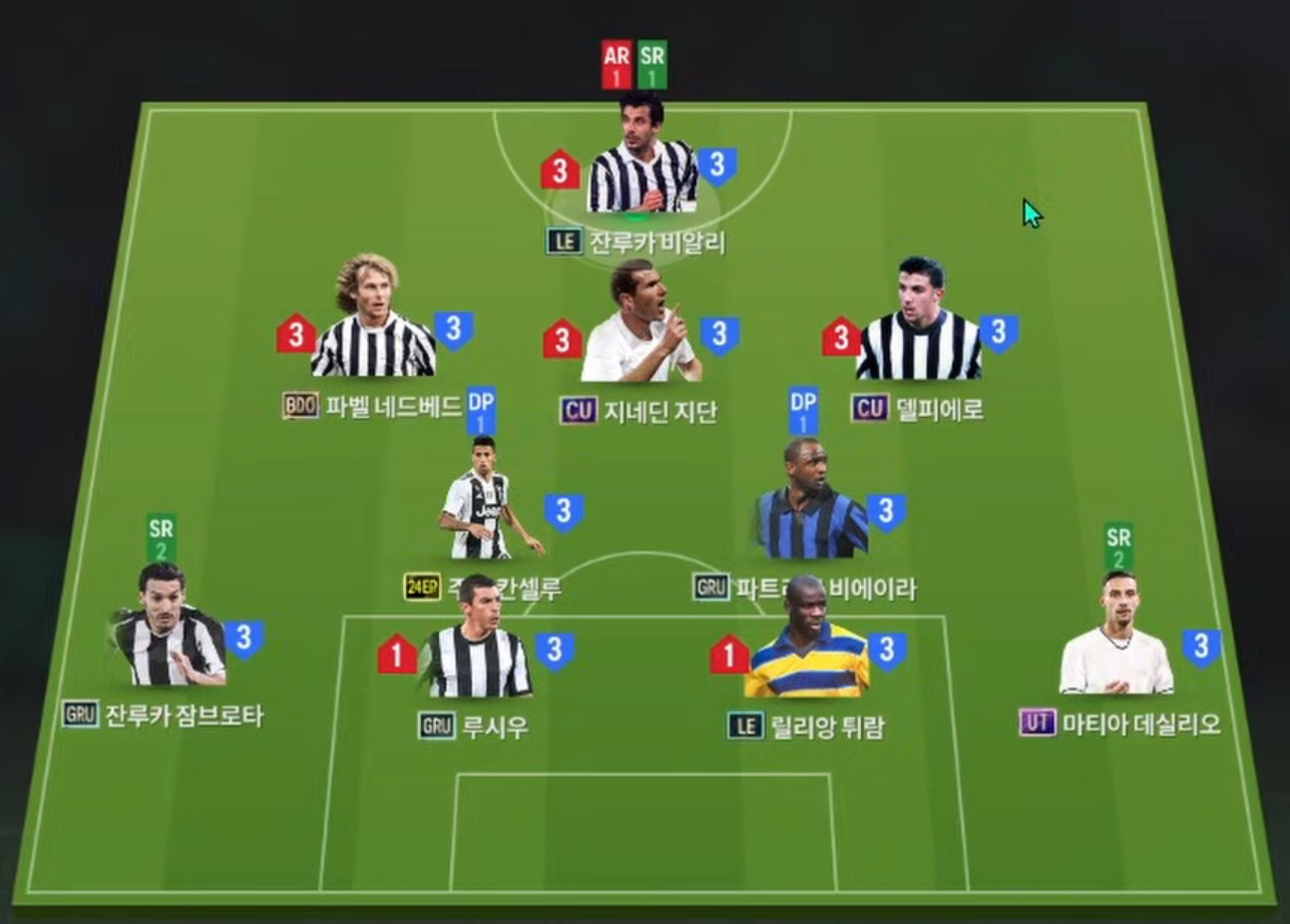 Trong game, đội hình Juventus được xây dựng trên nền tảng cân bằng và thực dụng: các trung vệ mạnh mẽ trong tranh chấp, tuyến tiền vệ giàu thể lực và tư duy chiến thuật, cùng hàng công luôn sẵn sàng trừng phạt đối thủ khi khoảng trống xuất hiện.