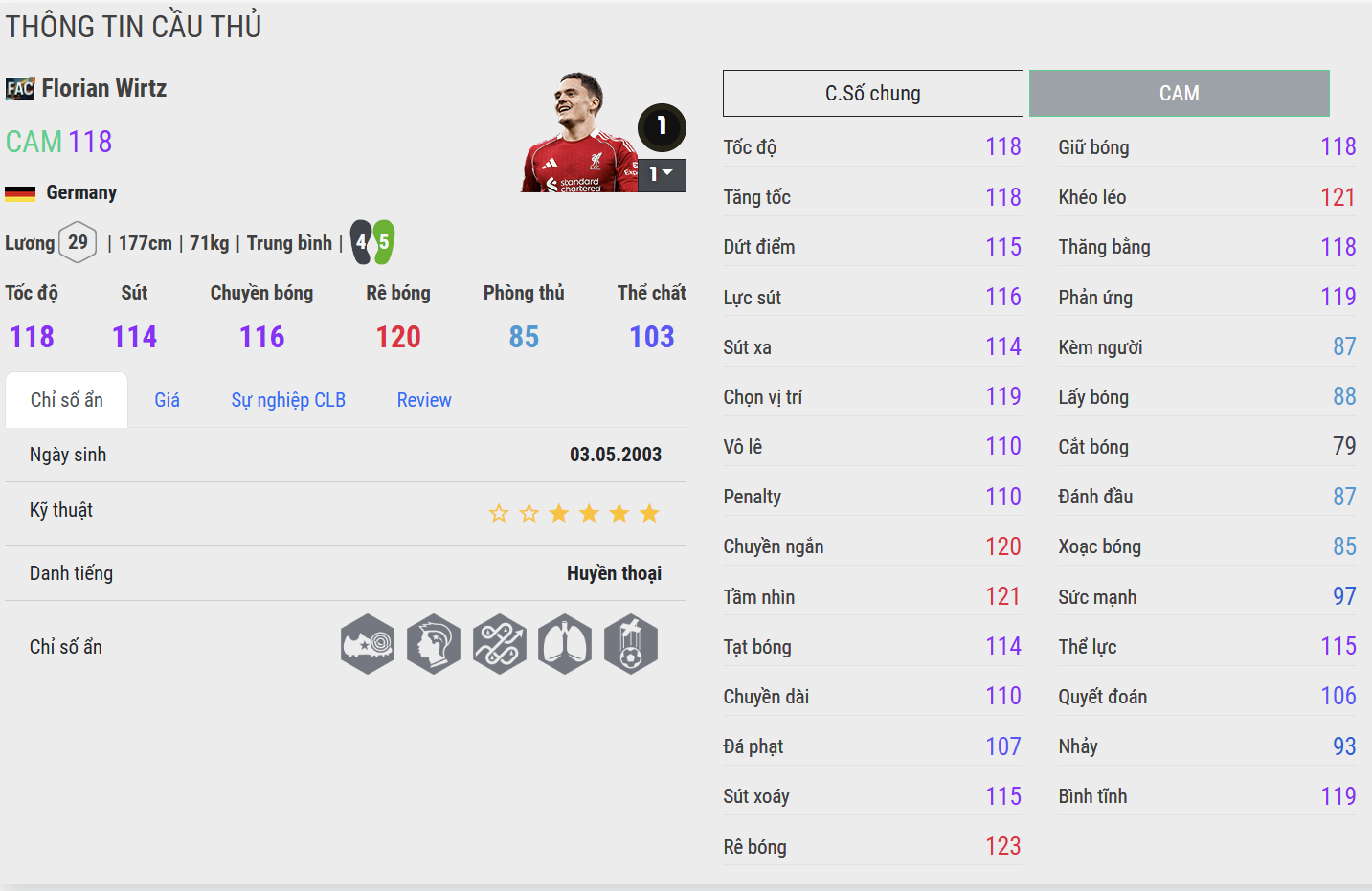 Khả năng chuyền bóng là điểm mạnh rõ rệt nhất của Wirtz FAC. Những pha chọc khe, chuyền ngắn một chạm hay đổi hướng tấn công đều mang lại cảm giác rất “ngọt”. Wirtz giúp lối chơi trở nên trơn tru, kết nối các vệ tinh xung quanh và giữ nhịp tấn công ở mức ổn định, dễ kiểm soát.