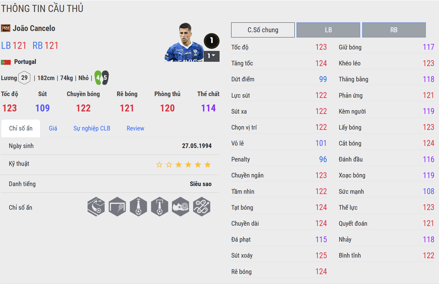 Cancelo Prime sở hữu tốc độ ấn tượng, giúp anh di chuyển linh hoạt dọc biên cả trong tấn công lẫn phòng ngự. Những pha bứt tốc ngắn và khả năng tăng tốc đột ngột khiến anh trở thành mối đe dọa thường trực khi dâng cao, đồng thời đủ nhanh để lùi về che chắn sau lưng.