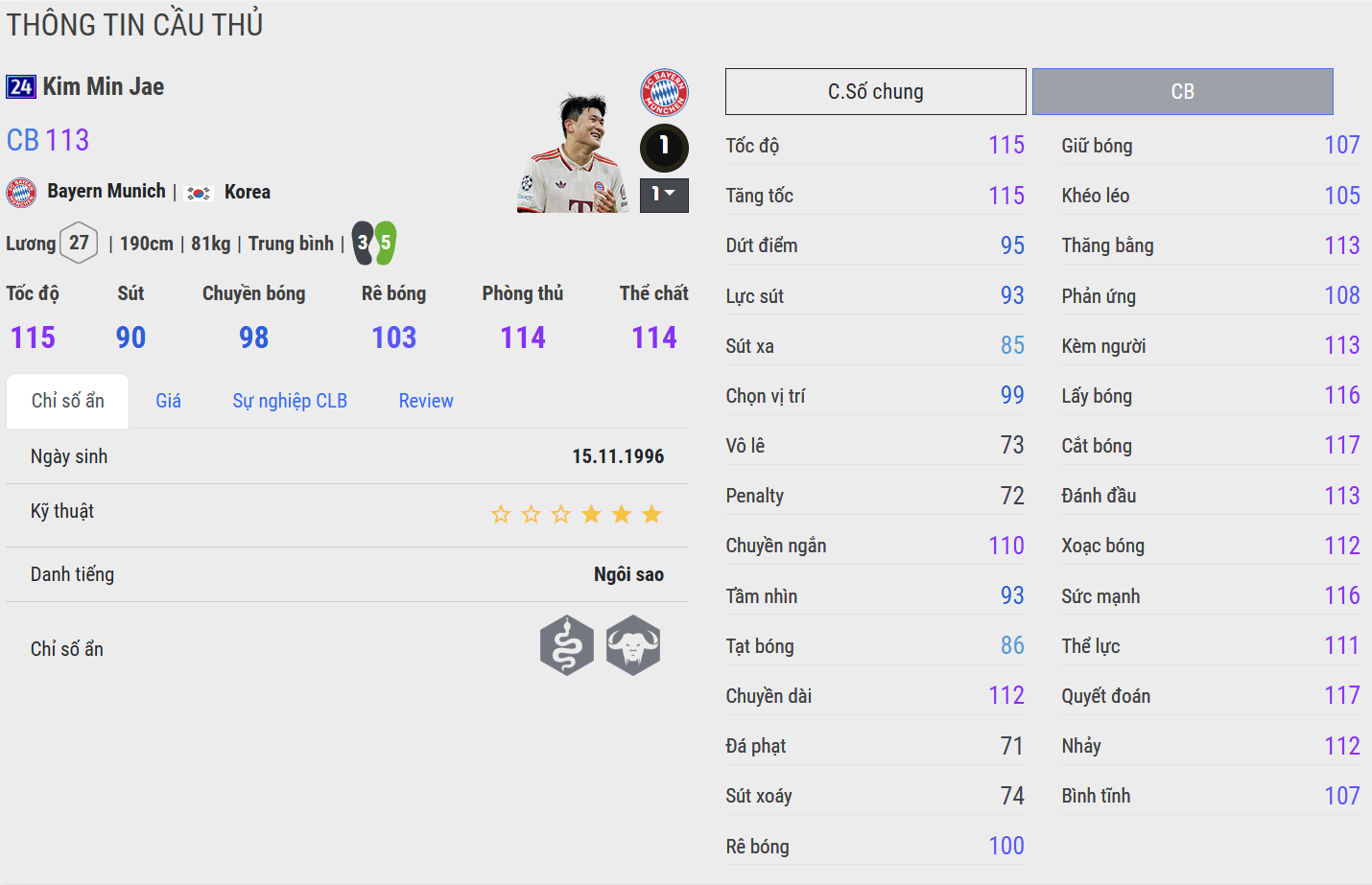 Mùa thẻ 24UCL của Kim Min-Jae hiện đang cho thấy hiệu quả của 1 trong những trung vệ hay nhất mùa 24UCL khi sở hữu nhiều ưu điểm nổi bật đặc biệt là tốc độ và sự linh hoạt. Vậy cụ thể chi tiết mùa thẻ này ra sao, hãy cùng tìm hiểu ở bài viết dưới đây
