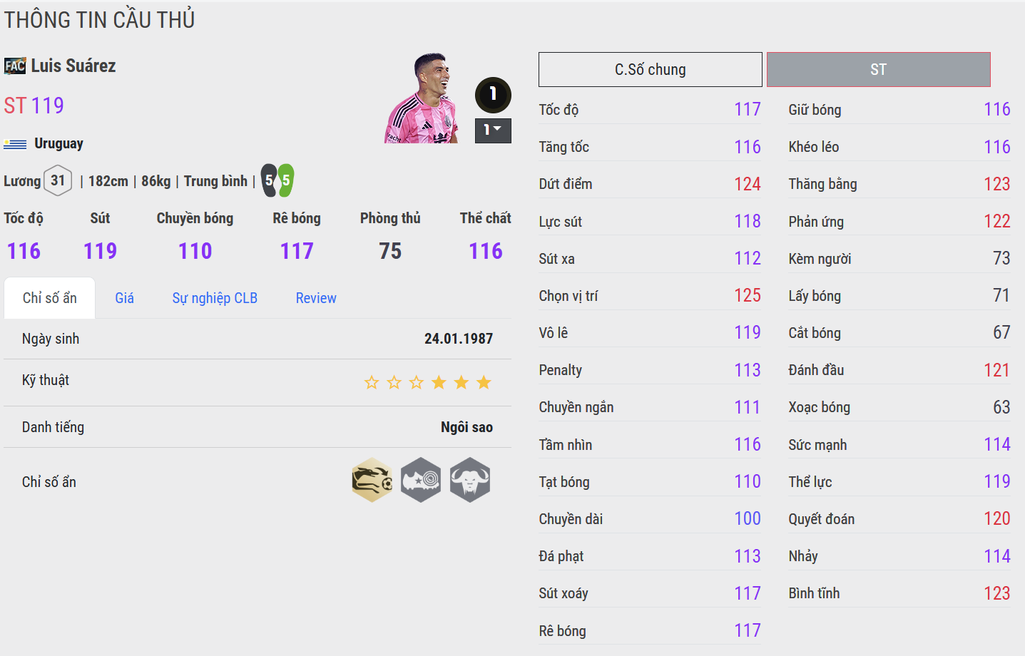 Tì đè là một trong những điểm khiến Suárez FAC trở nên khác biệt. Anh không quá cao to, nhưng thân người dày, trọng tâm thấp và cực kỳ lì. Trong các pha tranh chấp tay đôi, Suárez thường chiếm ưu thế nhờ khả năng giữ thăng bằng và không ngại va chạm. Đây là mẫu tiền đạo càng chơi càng “nóng máy”, càng đá càng khó chịu.