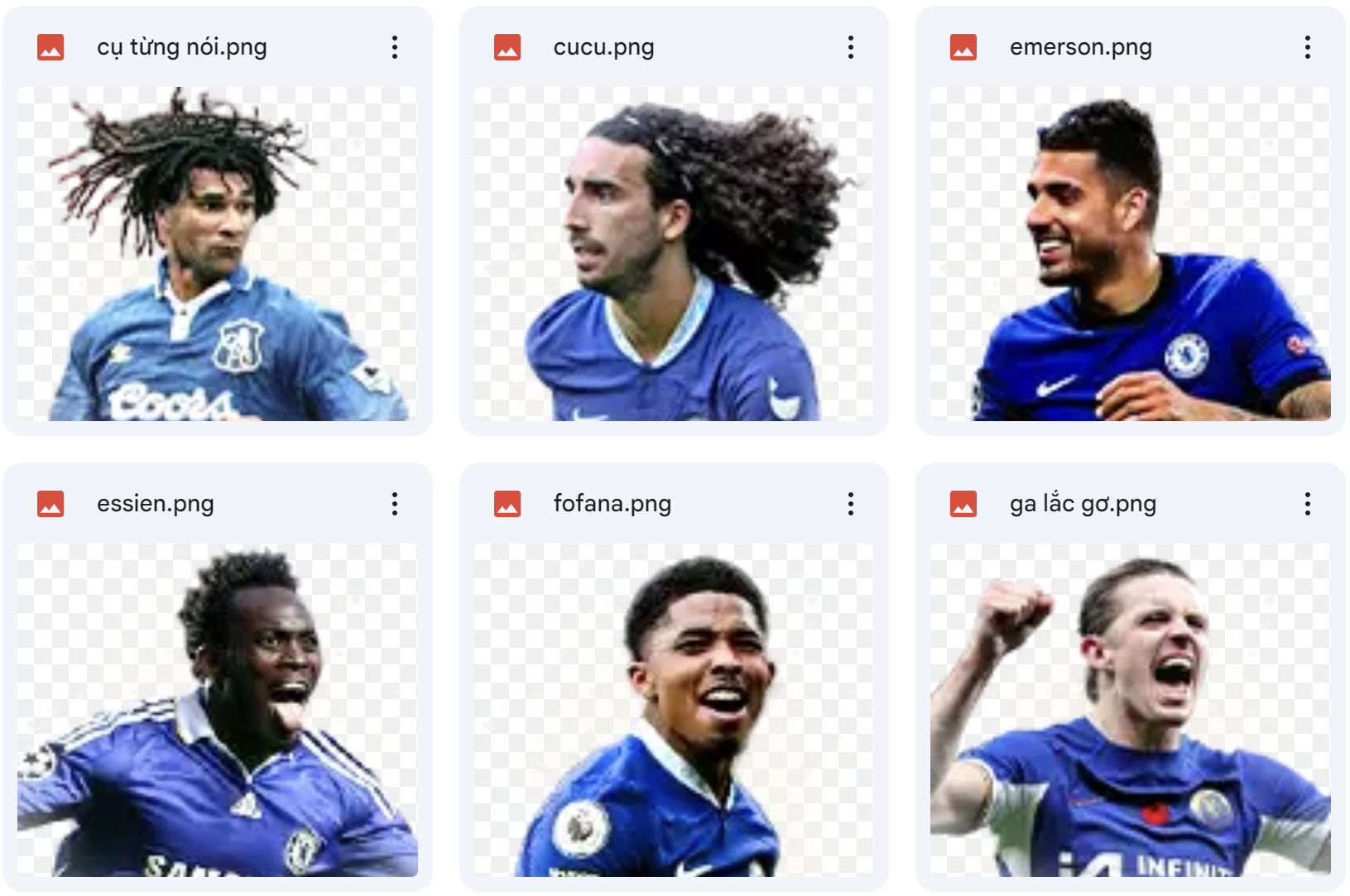 Bộ miniface này được thiết kế và chia sẻ bởi bạn : Hoàng Nguyễn với phong cách thiết kế mới mẻ, độc đáo và đẹp mắt. Cùng tông màu xanh quen thuộc và cực kì nổi bật của màu áo sân nhà Chelsea tạo nên cảm giác đồng đều cho miniface của các cầu thủ. Hi vọng bộ miniface này sẽ khiến các bạn cảm thấy thích thú và lựa chọn sử dụng.