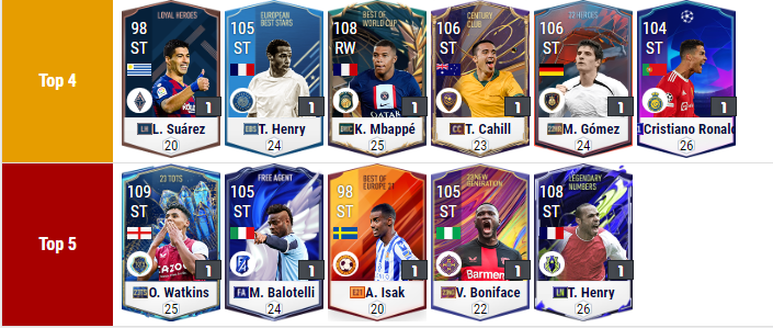 Trong danh sách này có một cái tên khá đặc biệt là Carlos Tevez, cầu thủ mới được ra khỏi danh sách giới hạn và mùa giải của anh này đã ra mắt cách đây 3 năm ( thời điểm ra mắt thẻ MC là vào tháng 12/2020 ). Vậy nhưng khả năng của Tevez vẫn vô cùng đáng nể khi được xếp cùng những ngôi sao đang làm mưa làm gió ở FC Online ở thời điểm đương đại. Rebic LOL cũng là một nhân tố bất ngờ vì anh này trong đá tay gần như rất ít người dùng.