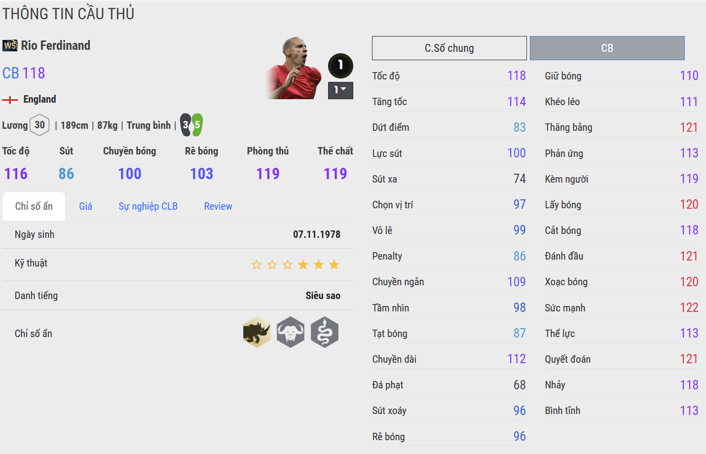 Anh không chỉ là “tường thành” vững chắc trước khung thành mà còn là người khởi phát lối chơi nhờ những pha chuyền dài chuẩn xác từ tuyến dưới. Trong FC Online, Ferdinand được đánh giá cao nhờ phong cách phòng ngự thông minh, chọn vị trí khôn ngoan và khả năng tì đè mạnh mẽ.