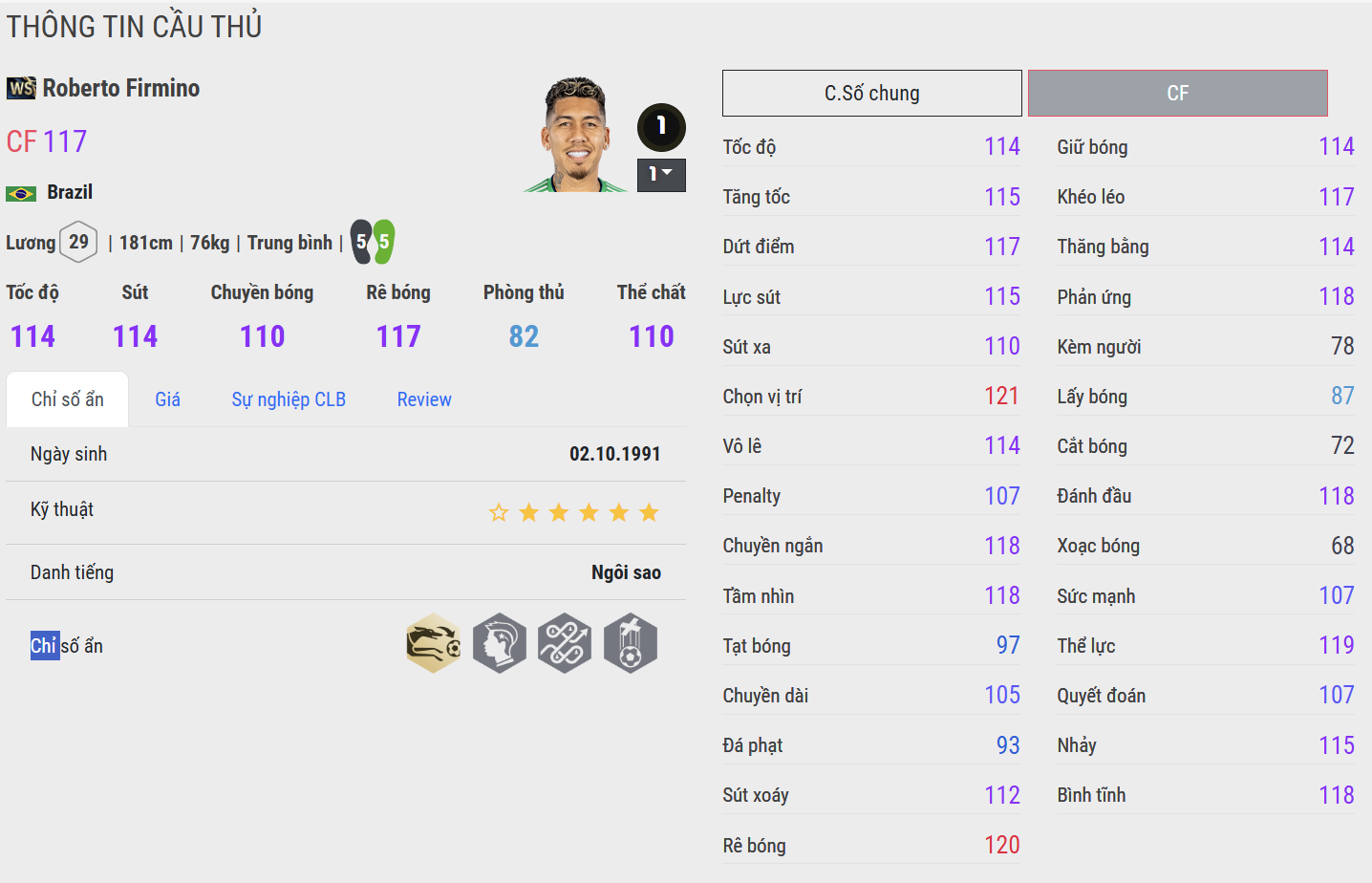 Firmino WS rê bóng theo phong cách dẻo – nhẹ – khôn ngoan: Giữ bóng sát chân, cảm giác bóng mềm mại. Đổi hướng nhanh, lách qua người gọn gàng. Không dựa vào skill moves, mà dựa vào timing chuẩn và độ mượt của thân người. Trong phạm vi hẹp, anh xử lý quá mượt, rất hợp để bó vào giữa hoặc chơi lùi như một CAM/CF.