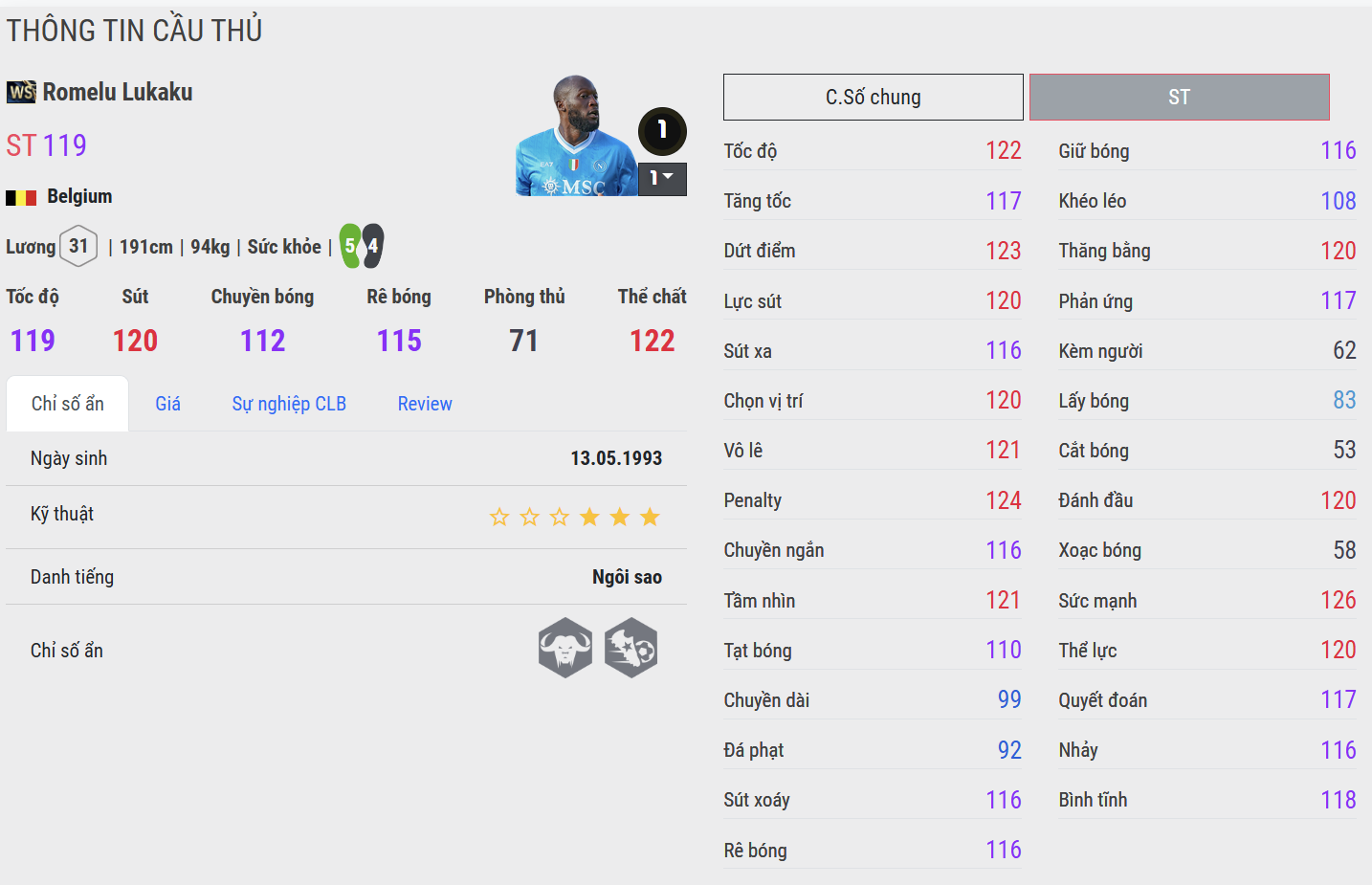 Lukaku WS sở hữu tốc độ tốt hơn tưởng tượng khi đưa vào trận. Anh tăng tốc mạnh trong quãng ngắn, nước rút ổn định và không bị cảm giác “nặng chân” như vài mùa khác. Khi có khoảng trống, Lukaku hoàn toàn có thể chạy chỗ băng cắt để nhận các đường chọc khe sớm. Tuy nhiên, anh vẫn không phải mẫu chạy nước rút quá dài – tốc độ vừa đủ để vượt mặt trung vệ, nhưng khó để bỏ xa hoàn toàn những CB nhanh.