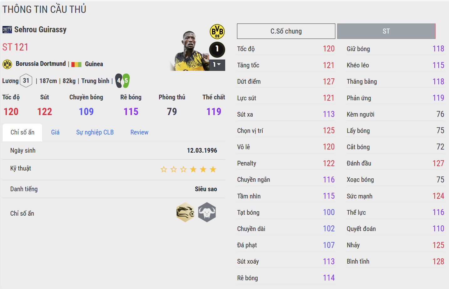 Rê bóng không phải sở trường, nhưng Guirassy xử lý bóng khá gọn trong phạm vi hẹp. Những pha xoay người, che chắn rồi đổi hướng đơn giản vẫn đủ hiệu quả nếu người chơi kiểm soát tốt nhịp độ. Đừng kỳ vọng các pha solo dài hay kỹ thuật phức tạp – Guirassy phù hợp hơn với lối chơi thực dụng, tối ưu từng chạm.