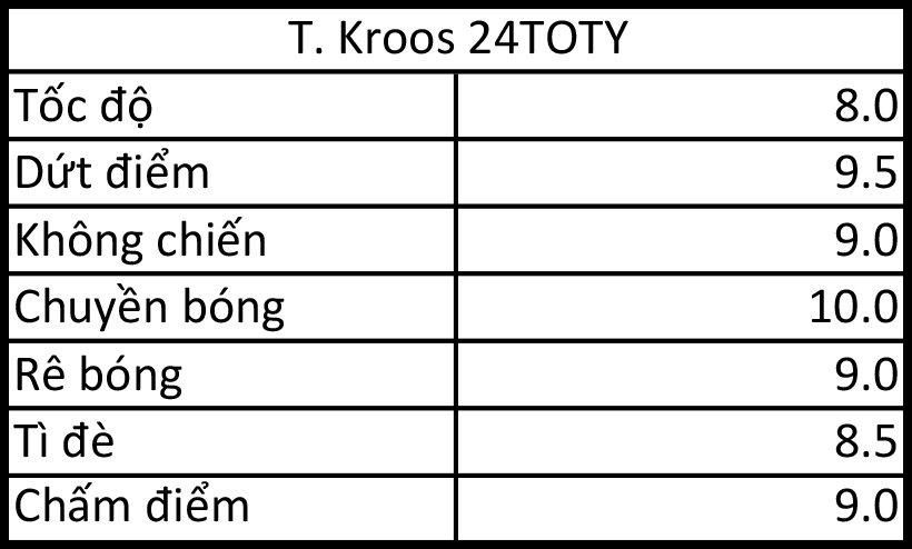 Kroos là một trong những chân chuyền hay nhất FC Online thời điểm hiện tại. Từ những tình huống chuyền ngắn, chuyền dài, ZW, QW với Kroos đều vô cùng xuất sắc với độ chính xác cực kì cao. Lực bóng từ chân Kroos căng, độ xoáy bóng tốt và luôn đặt đồng đội vào tư thế nhận bóng thuận lợi.