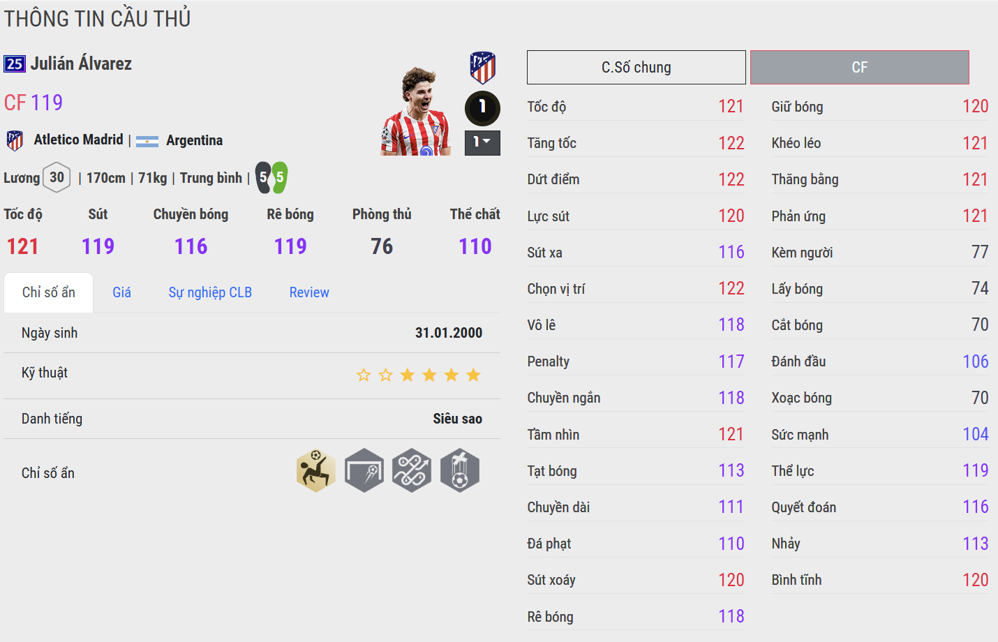 Alvarez 25UCL là phiên bản toàn diện và sát thương cao nhất trong nhóm. Di chuyển thông minh, pressing tốt và dứt điểm gọn gàng giúp anh có thể đá CAM, CF hoặc ST lùi. Quan trọng hơn, Alvarez tạo ra cảm giác rất “khó bắt bài” – có thể kiến tạo, có thể ghi bàn và luôn xuất hiện đúng lúc để định đoạt trận đấu.