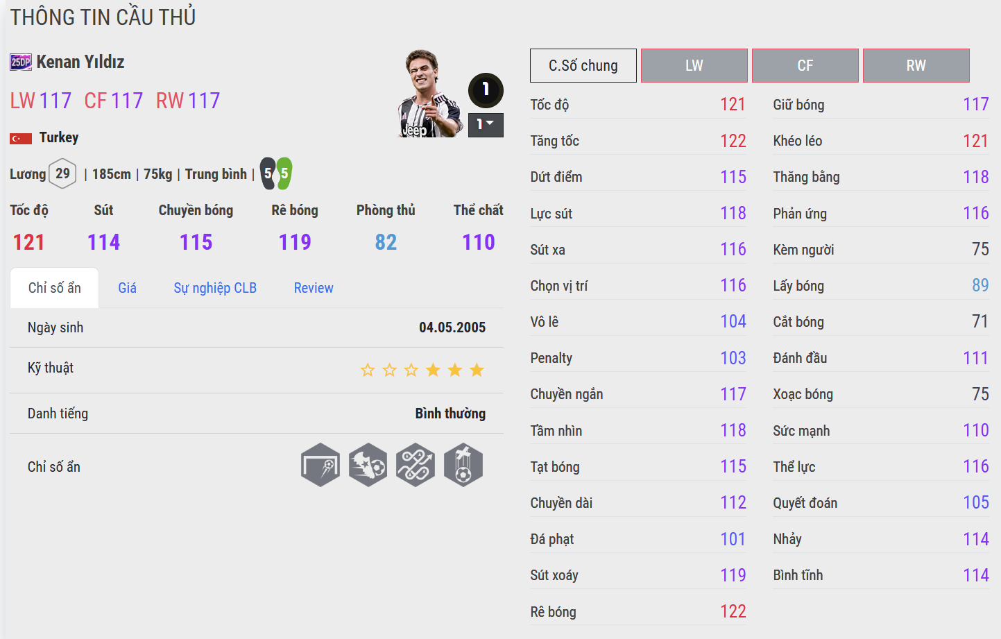 Yildiz 25DP là làn gió trẻ của dòng CAM hiện đại – kỹ thuật, dám cầm bóng và luôn hướng về phía trước. Anh nổi bật với khả năng rê dắt mềm mại, xử lý nhanh và dứt điểm tinh tế. Trong gameplay, Yildiz thể hiện sự tự tin ở từng pha chạm, luôn sẵn sàng tạo ra khoảnh khắc đột biến bằng những cú sút bất ngờ hoặc pha xử lý ảo diệu. Một CAM đầy khát vọng, trẻ trung và tiềm năng trở thành biểu tượng mới của dòng thẻ Devoted Players.