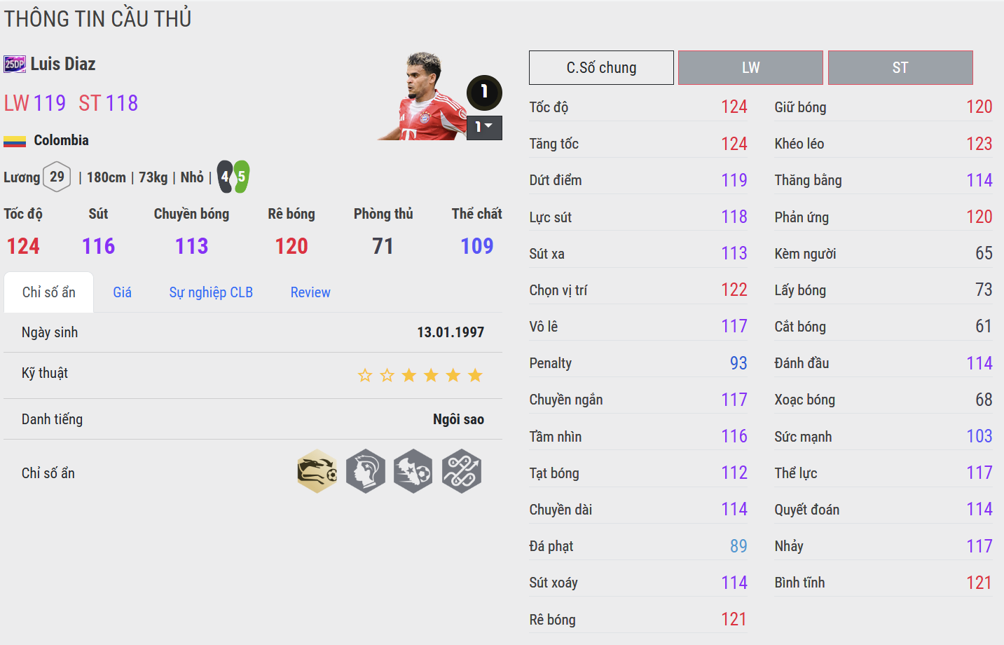 Díaz 25DP tiếp tục thắp sáng tinh thần Nam Mỹ bằng lối chơi giàu cảm xúc và đậm chất ngẫu hứng. Anh sở hữu khả năng rê bóng mềm mại, những pha bứt tốc ngắn đầy bất ngờ và dứt điểm bằng cả hai chân cực gọn. Trong gameplay, Díaz như một cơn gió trên hành lang cánh – nhanh, lắt léo và luôn tiềm ẩn đột biến. Một cầu thủ mang hơi thở tự do, phù hợp với những HLV ưa thích thứ bóng đá giàu nhịp điệu và kỹ thuật.