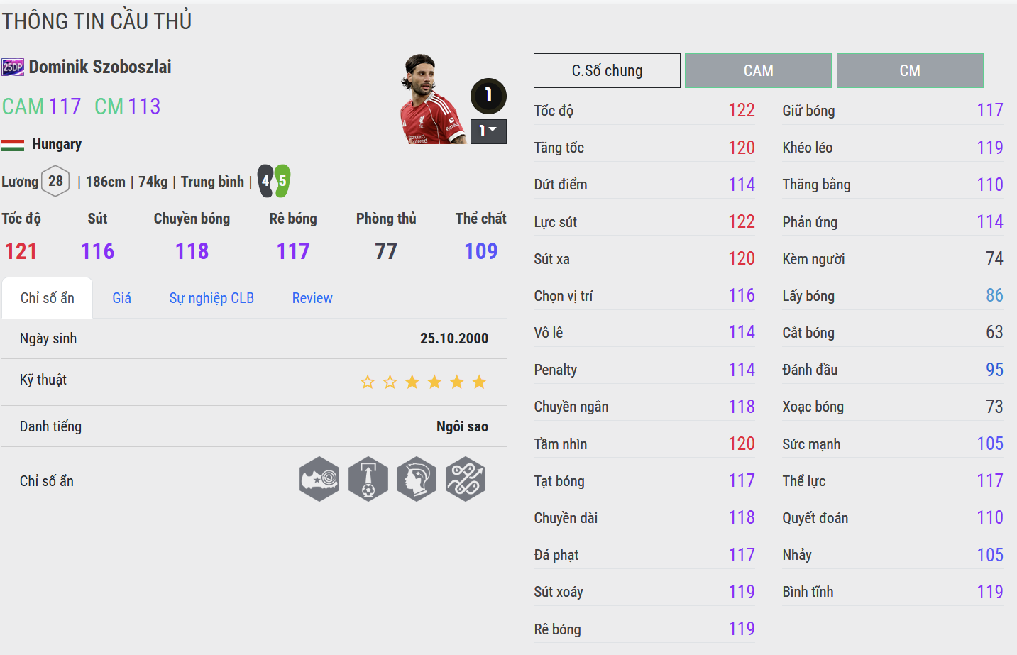 Szoboszlai 25DP mang phong thái của một maestro đích thực. Anh kết hợp nhãn quan chiến thuật sắc sảo với những cú sút xa đậm chất nghệ sĩ. Mỗi pha xử lý của Szoboszlai đều toát lên sự tự tin và nhịp điệu – từ những đường chuyền xuyên tuyến cho đến cú đặt lòng hiểm hóc. Trong gameplay, anh là “trái tim sáng tạo” cho mọi sơ đồ cần một CAM vừa tinh tế, vừa biết tạo khác biệt bằng bản lĩnh của riêng mình.