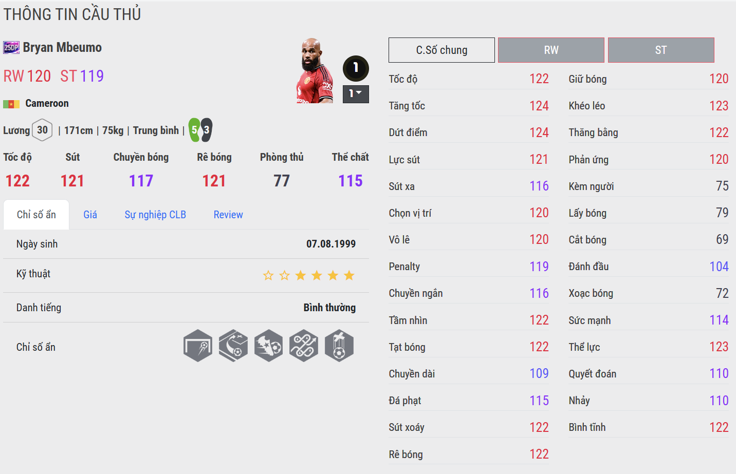 Mbeumo 25DP là biểu tượng của sự ổn định và kỷ luật. Anh không hoa mỹ, nhưng hiệu quả trong từng pha xử lý. Di chuyển thông minh, chọn vị trí chuẩn xác và dứt điểm gọn gàng – đó là những gì khiến Mbeumo trở thành lựa chọn đáng tin cậy cho mọi đội hình. AI thi đấu chủ động giúp anh luôn xuất hiện đúng lúc, tạo ra áp lực liên tục ở khu vực tấn công. Một cầu thủ mang tinh thần cần mẫn và bản lĩnh – thứ hiếm thấy trong meta hiện nay.