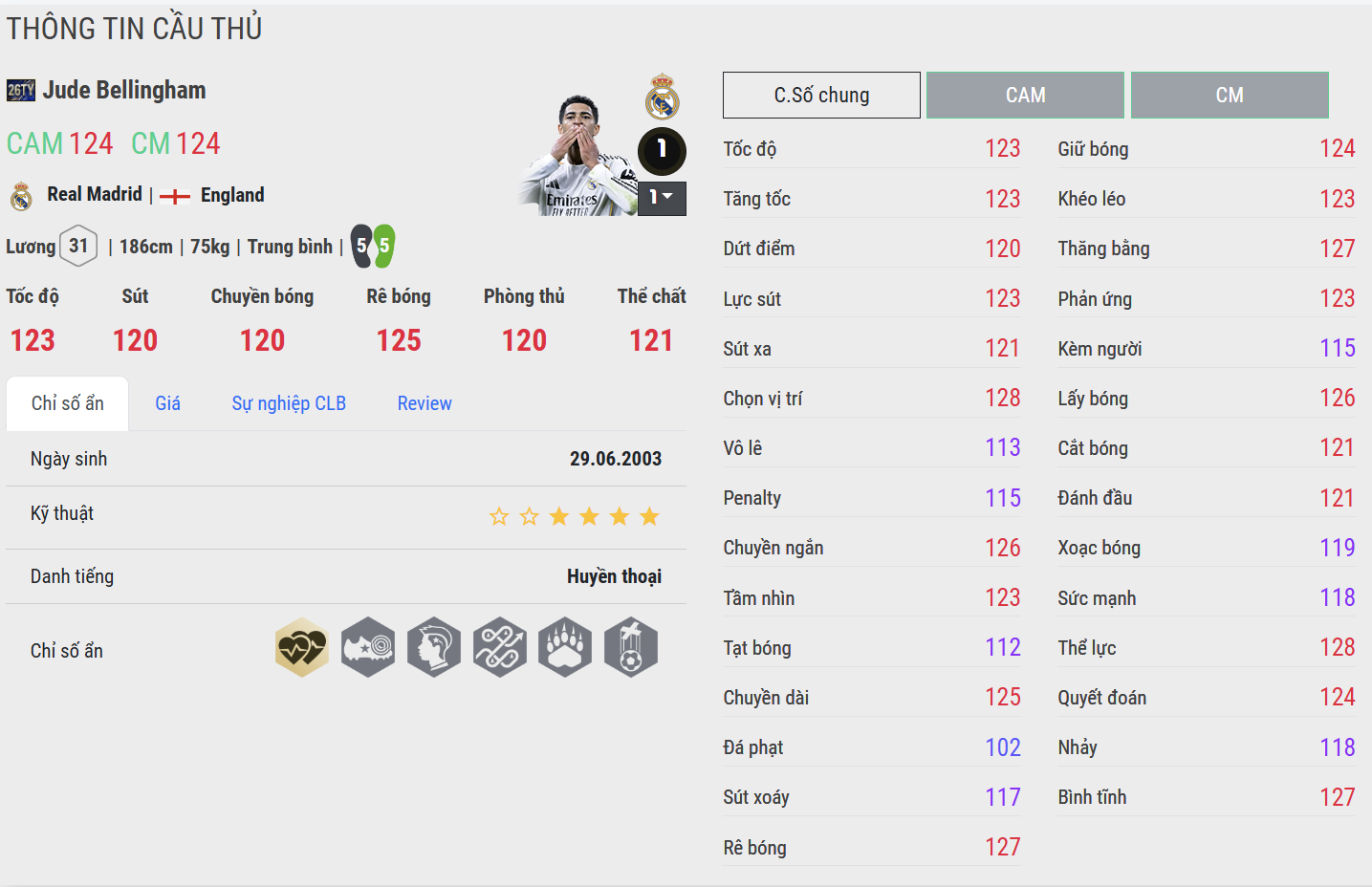 Bellingham 26TOTY đại diện cho mẫu box-to-box hiện đại: mạnh mẽ, xông xáo và giàu năng lượng. Khả năng tham gia cả tấn công lẫn phòng ngự giúp anh bao phủ không gian rất rộng. Trong thực chiến, Bellingham tạo ra sức ép liên tục lên tuyến giữa đối thủ, đặc biệt hiệu quả với những đội hình pressing và đánh chuyển trạng thái nhanh.