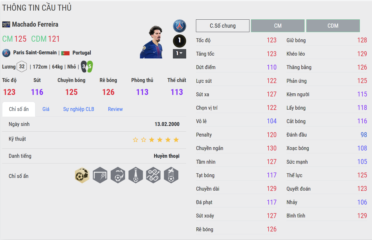 Vitinha 26TOTY là mẫu tiền vệ kiểm soát nhịp độ thuần túy. Xử lý bóng mềm mại, xoay trở mượt trong không gian hẹp và khả năng chuyền bóng chính xác giúp anh giữ cho thế trận luôn nằm trong tầm kiểm soát. Trong lối chơi ban bật, kiểm soát bóng hoặc đánh trung lộ, Vitinha mang lại cảm giác cực kỳ “đã”, đúng chất nhạc trưởng hiện đại.