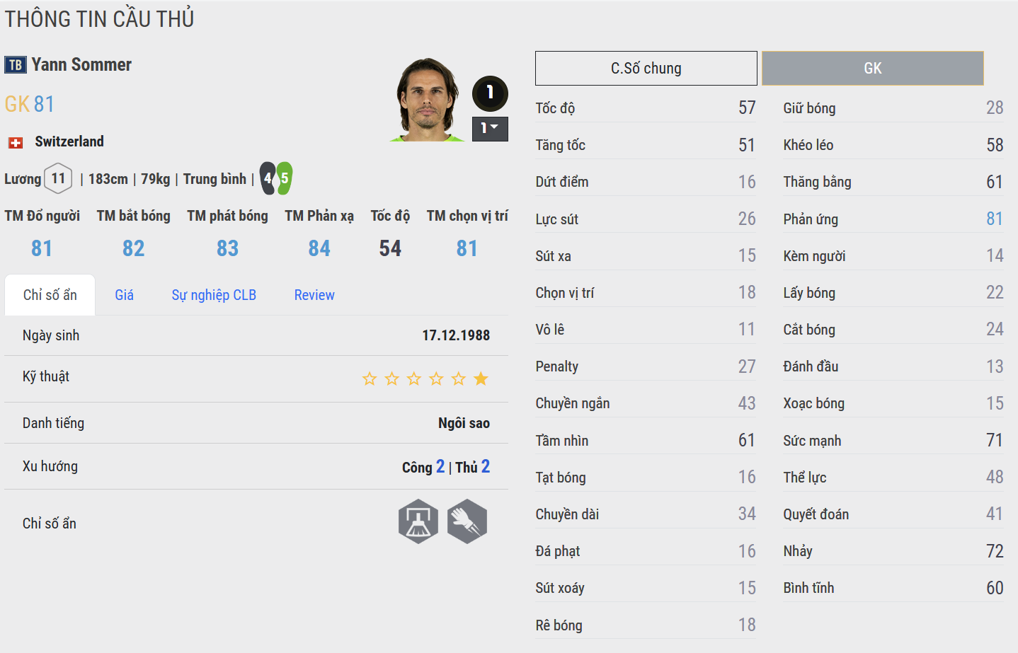 Sommer TB nổi bật với phản xạ nhanh và khả năng xử lý tình huống gọn gàng trong phạm vi hẹp. Anh bắt bài tốt các pha sút chìm, đổ người nhanh và hiếm khi mắc lỗi ngớ ngẩn. Trong gameplay, Sommer mang lại cảm giác an toàn ở những pha dứt điểm cận thành, phù hợp với đội hình phòng ngự thấp hoặc cần sự chắc chắn tức thì.