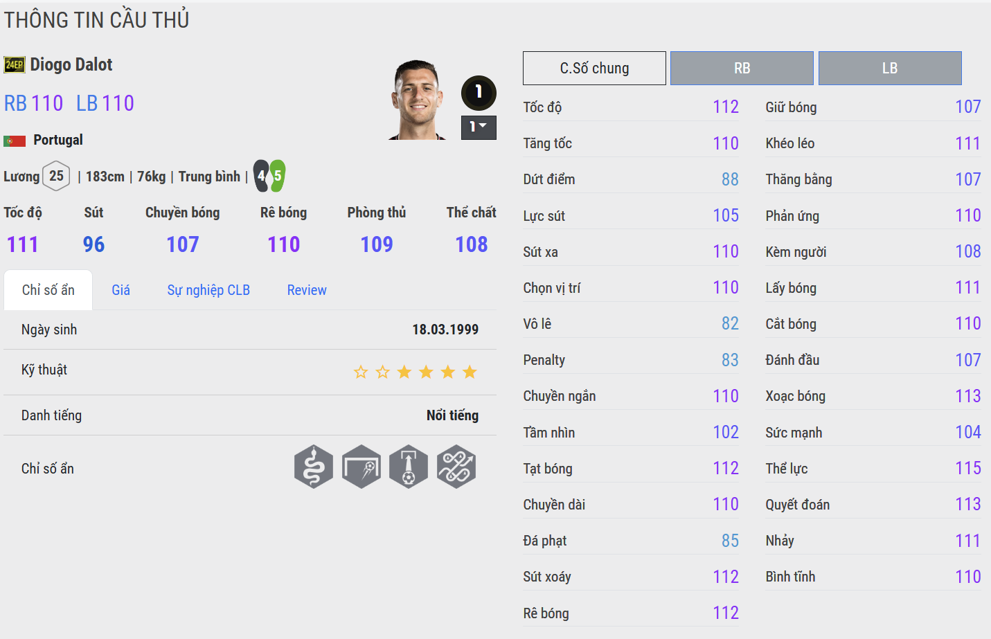 Dalot 24EP là lựa chọn cân bằng giữa phòng ngự và tấn công. Sở hữu thể hình, tốc độ ổn cùng khả năng tranh chấp khá, Dalot đáp ứng tốt các yêu cầu của một RB hiện đại. Điểm cộng lớn là khả năng tham gia tấn công linh hoạt, hỗ trợ build-up và xâm nhập tuyến hai tương đối hiệu quả, phù hợp với các sơ đồ pressing hoặc đá biên tốc độ cao.