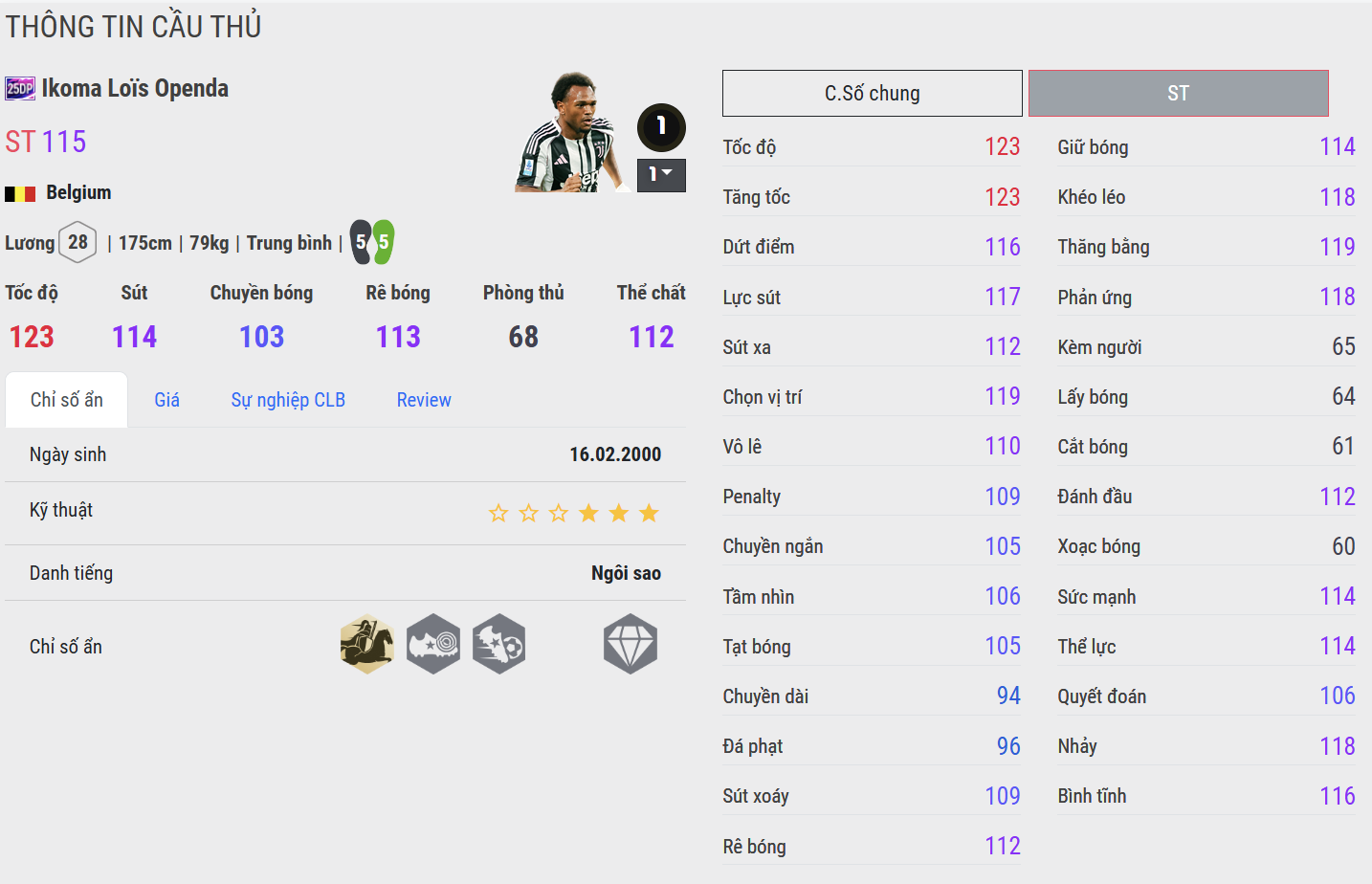 Openda là cơn lốc tốc độ trên hàng công. Anh nổi bật với khả năng bứt phá thần tốc, rê bóng linh hoạt và dứt điểm mạnh mẽ. Trong gameplay, Openda mang đến cảm giác “cháy” trong từng pha bóng – di chuyển liên tục, áp sát nhanh và luôn tiềm ẩn nguy cơ ghi bàn. Lý tưởng cho lối chơi phản công và khai thác khoảng trống phía sau hàng thủ đối phương.
