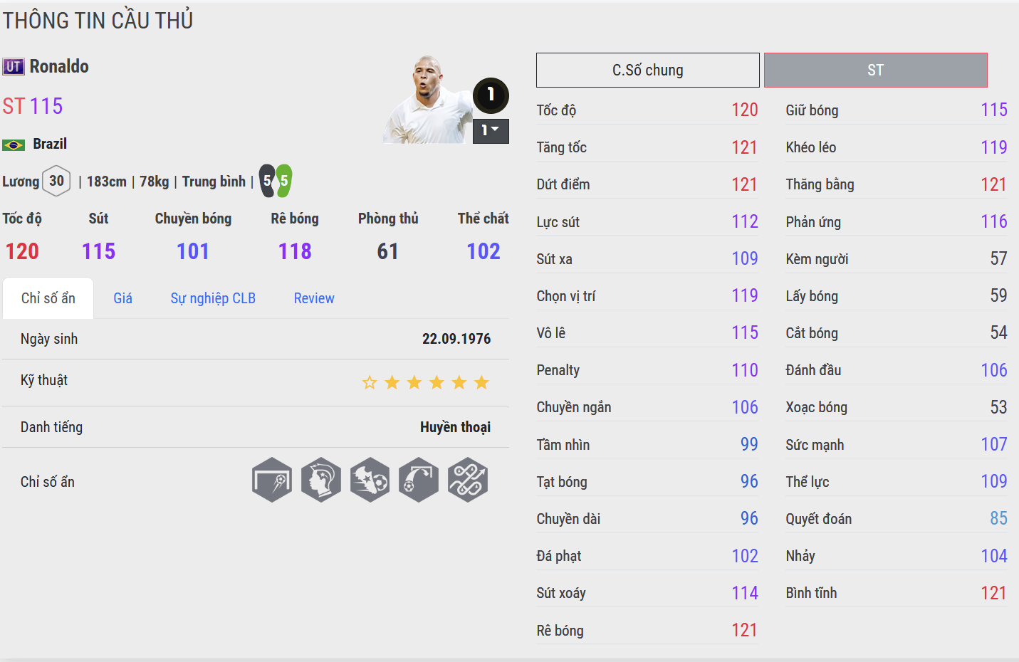 Pele DC là đỉnh cao của vị trí tiền đạo trong FC Online – sự hòa quyện hoàn hảo giữa kỹ thuật thượng hạng, tư duy chơi bóng xuất sắc và khả năng dứt điểm toàn diện. Khả năng giữ bóng, xoay trở và chọn thời điểm băng vào vòng cấm của Pele mang lại cảm giác kiểm soát tuyệt đối. Anh không chỉ là người kết liễu, mà còn là linh hồn tấn công, mẫu tiền đạo có thể tự mình định đoạt cục diện trận đấu trong mọi hoàn cảnh.